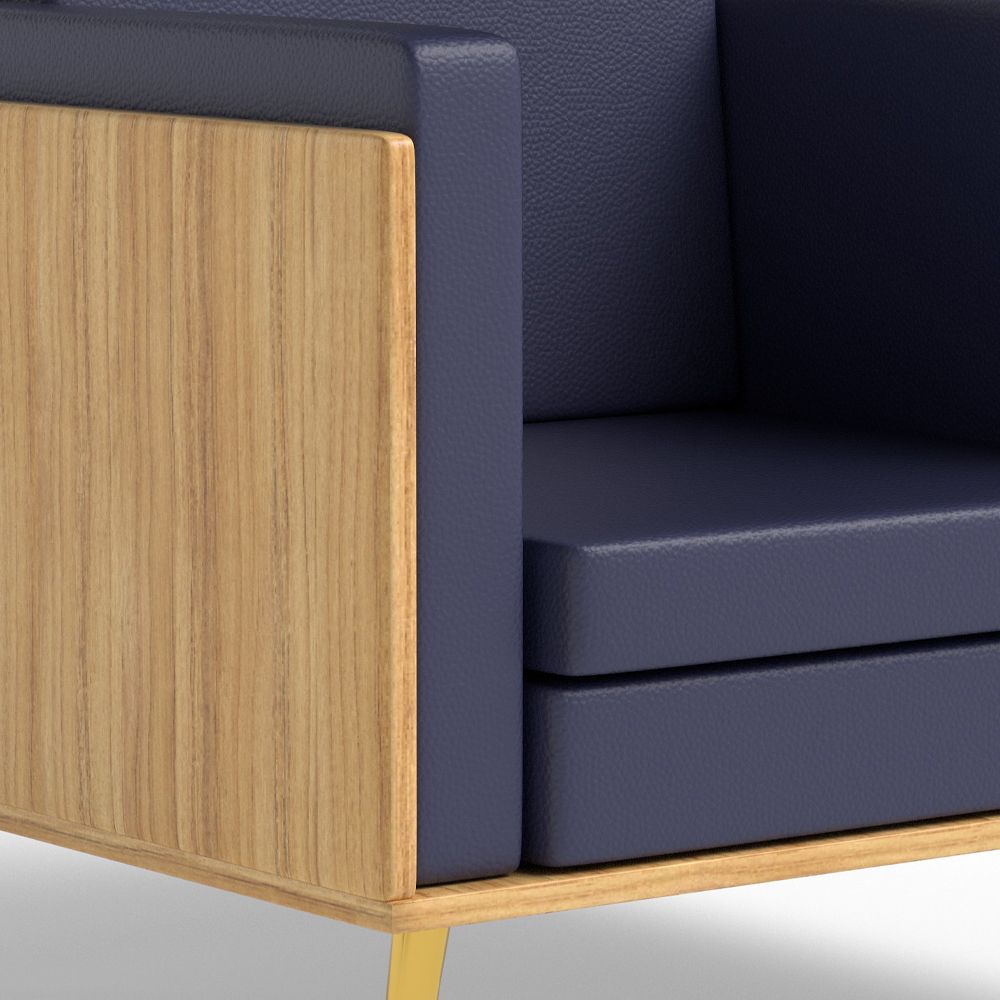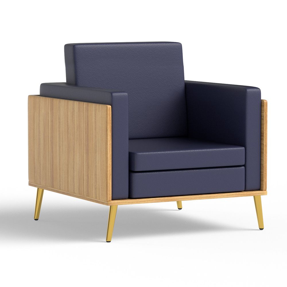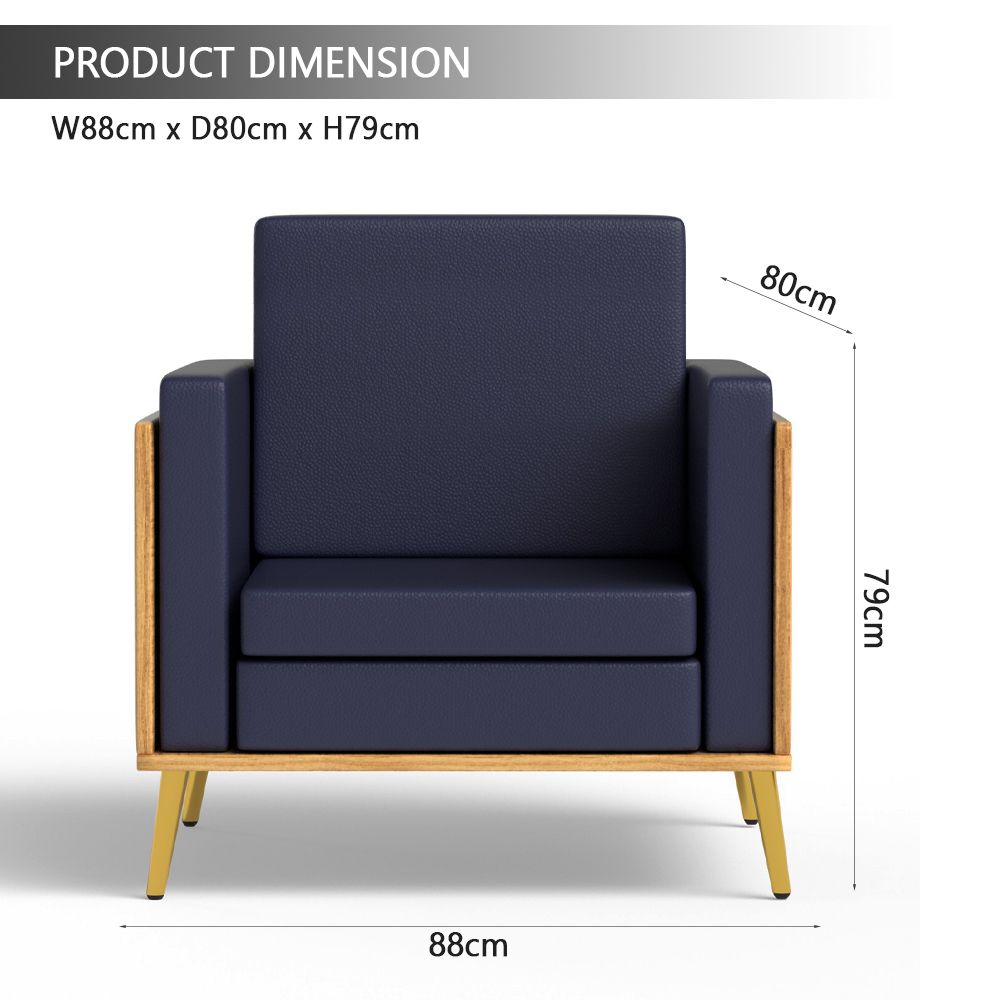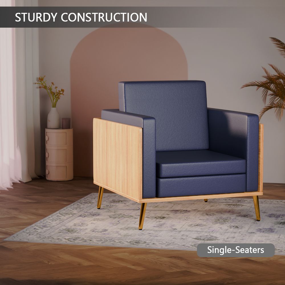 Mahmayi KD 3326 Stylish Single Seat Coco Bolo Wooden Sofa with Golden Legs and Comfortable PU Cushion, Durable and Space Saving Design, Ideal for Home, Office, Living Room and Lounge Area - Blue