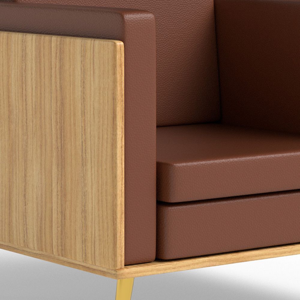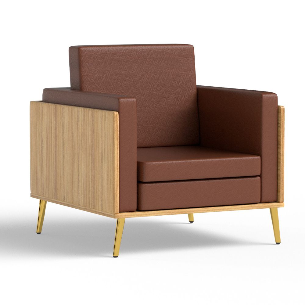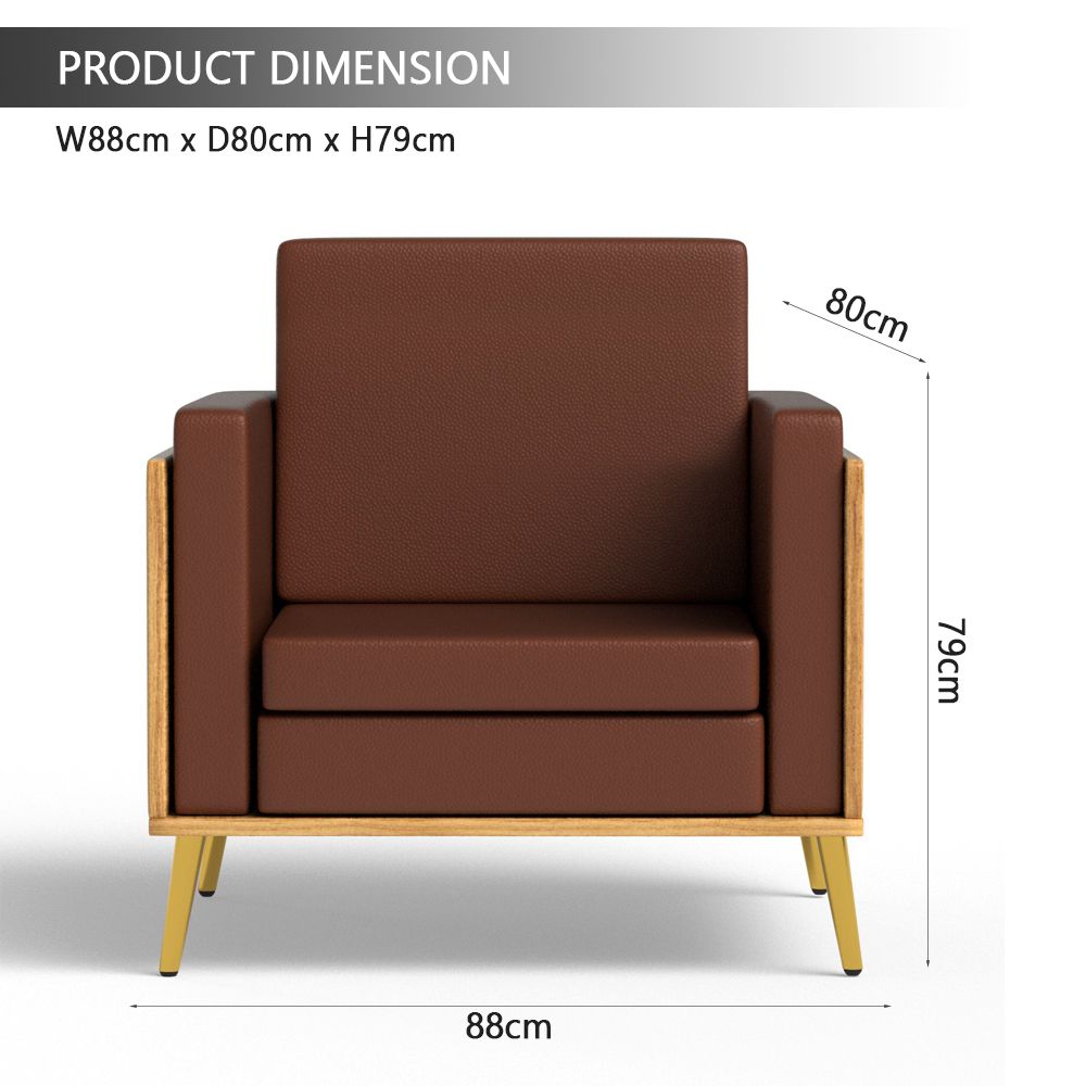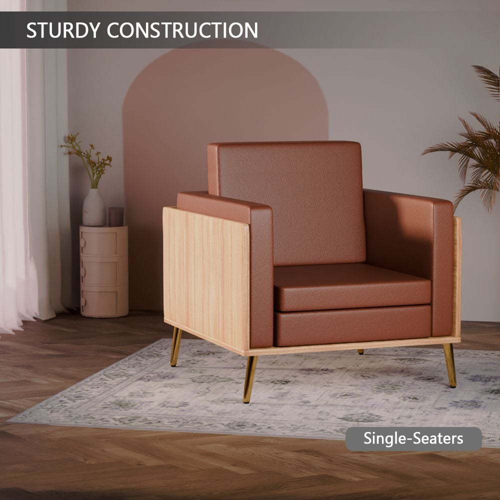 Mahmayi KD 3326 Stylish Single Seat Coco Bolo Wooden Sofa with Golden Legs and Comfortable PU Cushion, Durable and Space Saving Design, Ideal for Home, Office, Living Room and Lounge Area - Brown