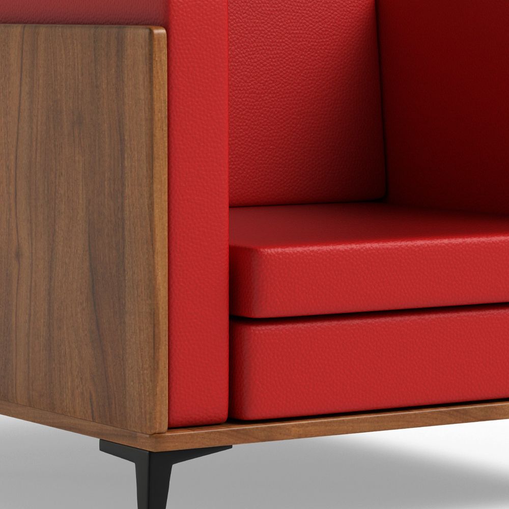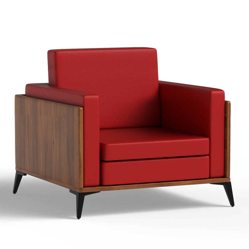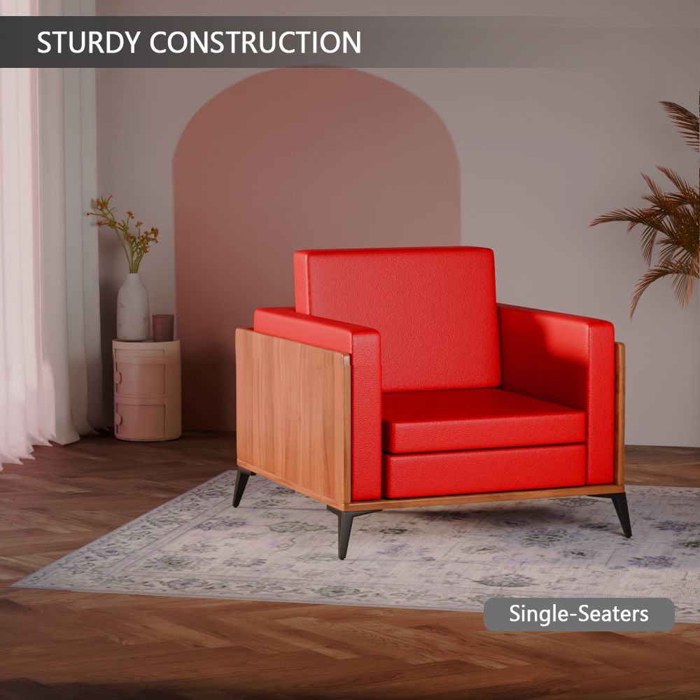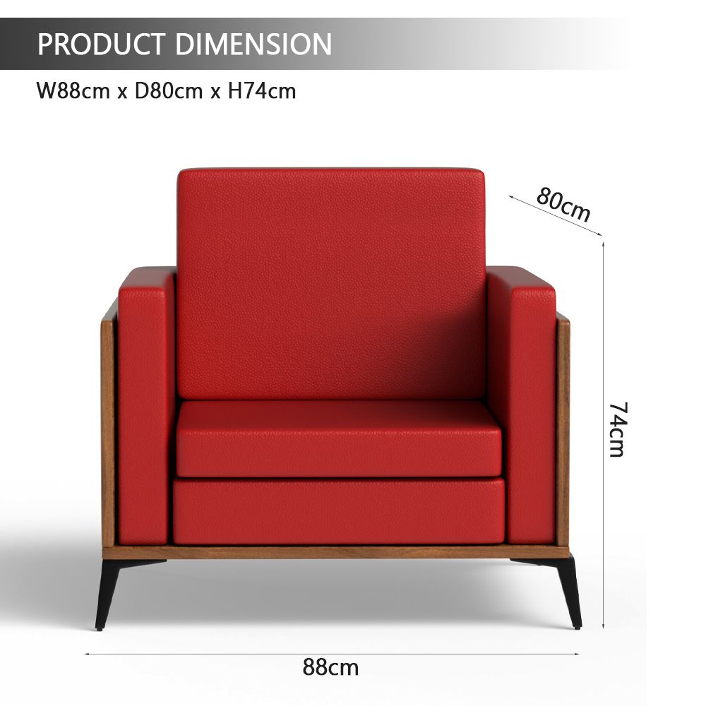 Stylish Single Seat Natural Dijon Walnut Wooden Sofa with Comfortable PU Cushion, Durable and Space Saving Design, Ideal for Home, Office, Living Room and Lounge Area - Red