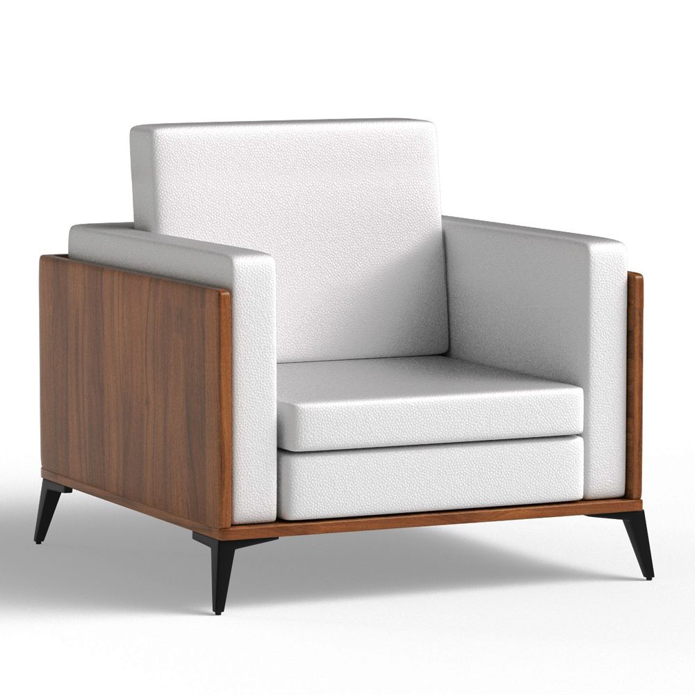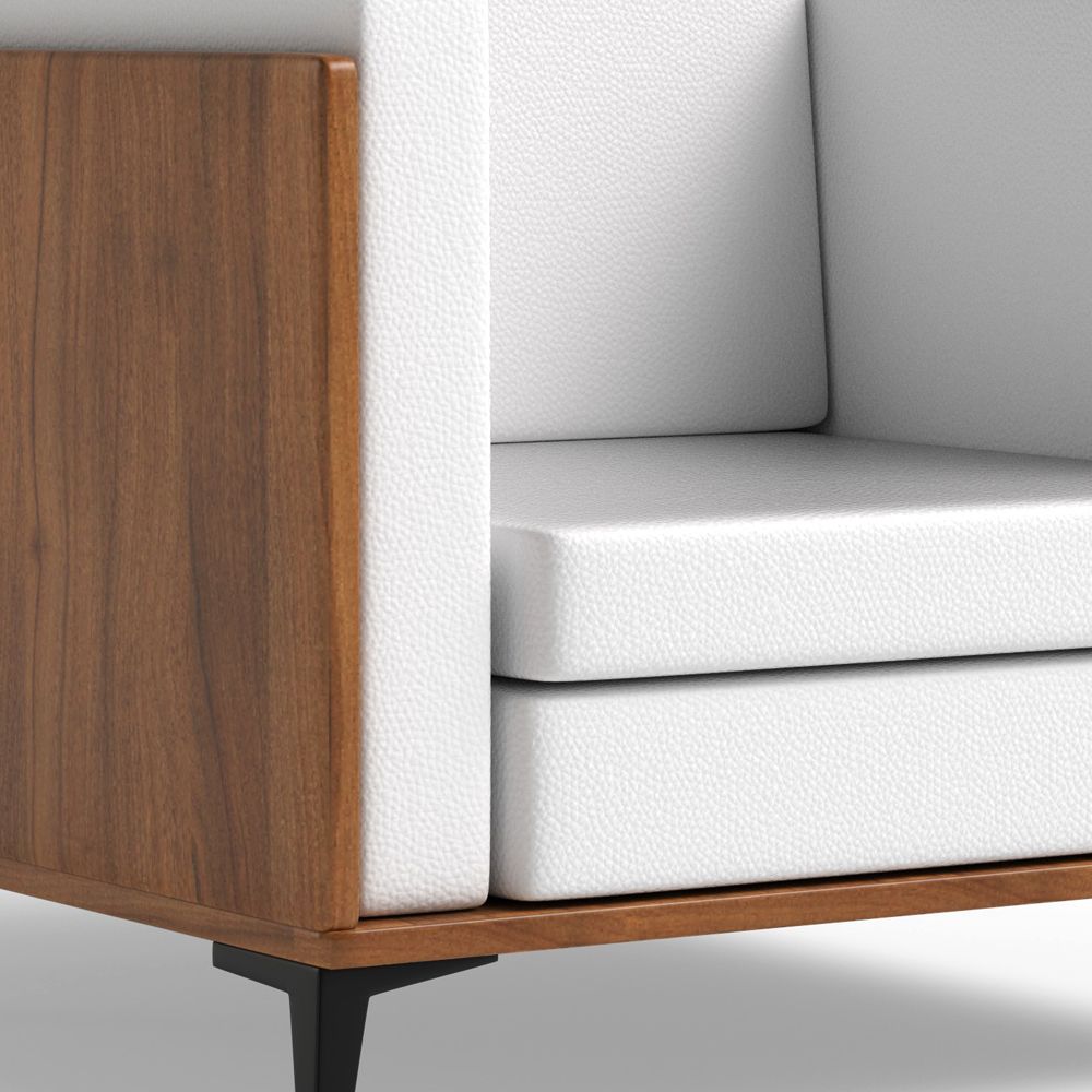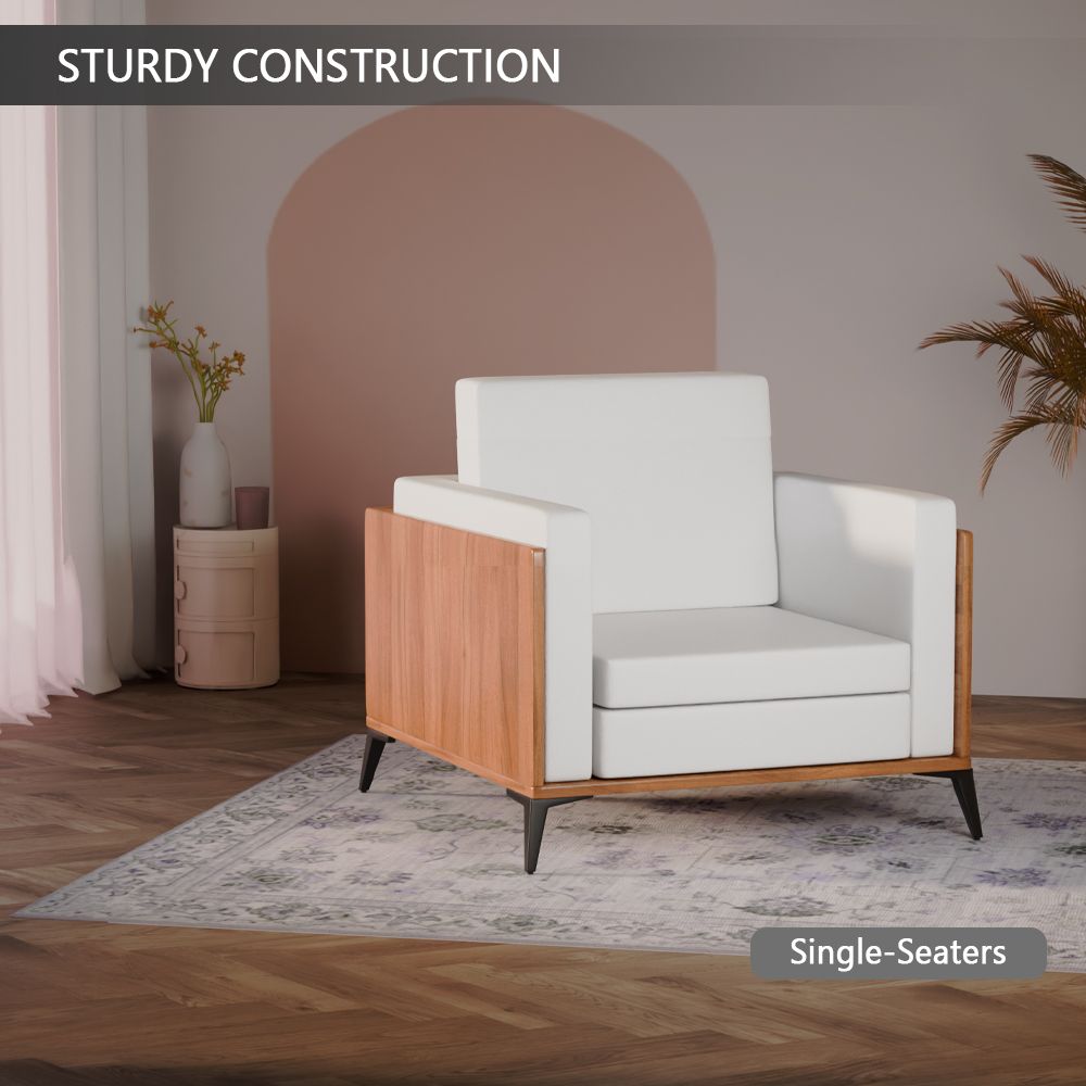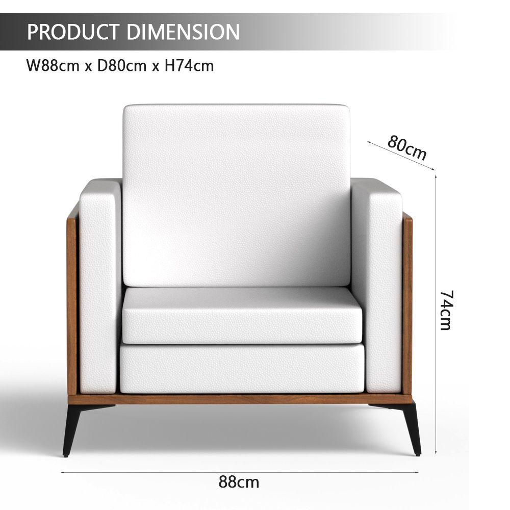 Stylish Single Seat Natural Dijon Walnut Wooden Sofa with Comfortable PU Cushion, Durable and Space Saving Design, Ideal for Home, Office, Living Room and Lounge Area - White