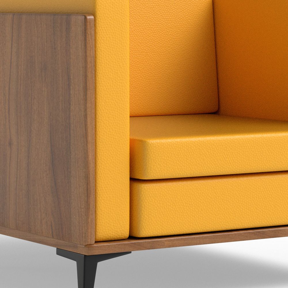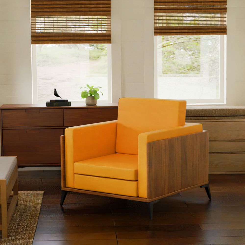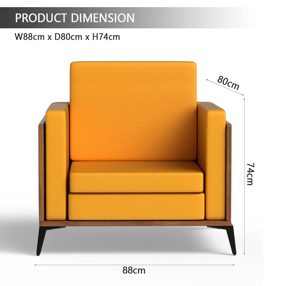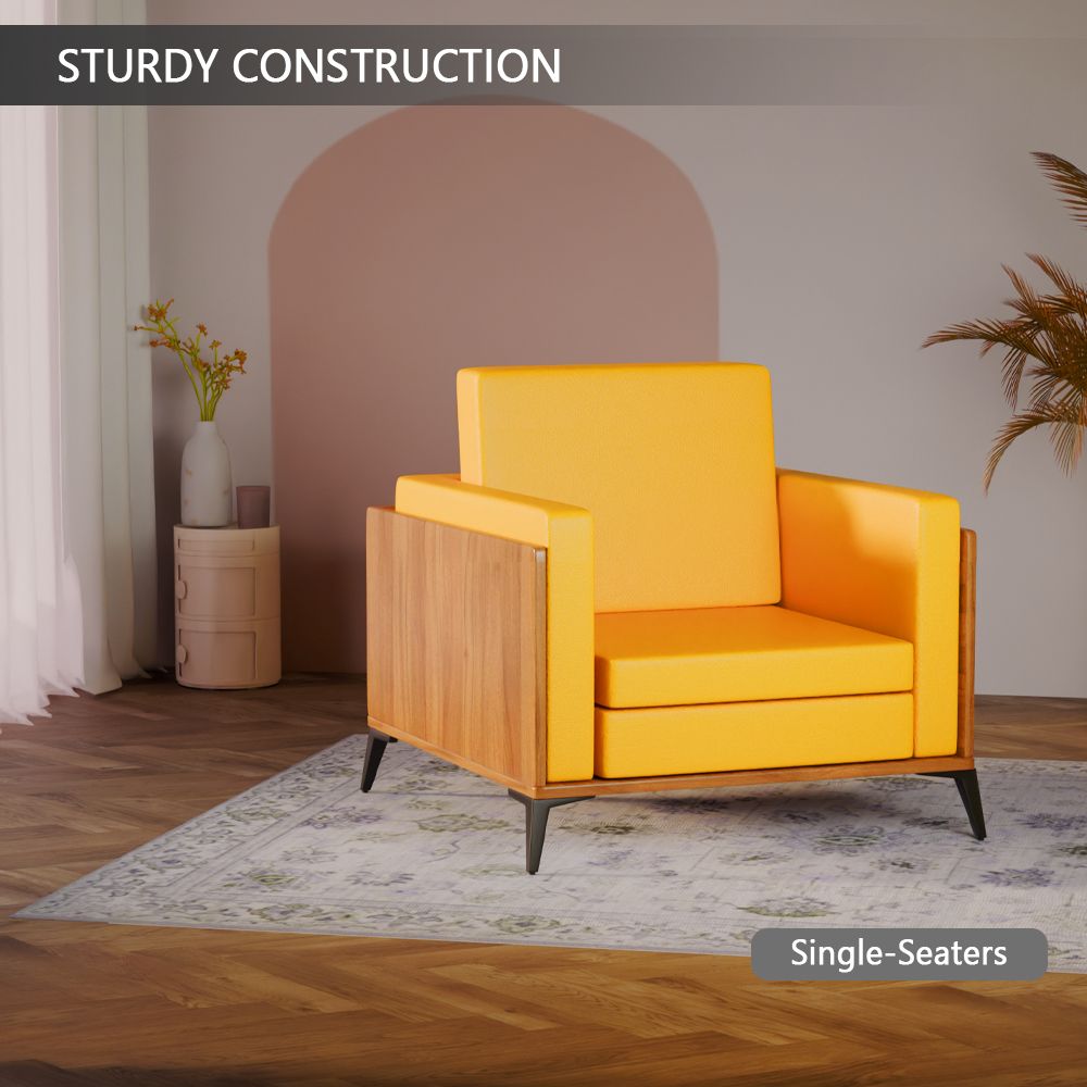 Stylish Single Seat Natural Dijon Walnut Wooden Sofa with Comfortable PU Cushion, Durable and Space Saving Design, Ideal for Home, Office, Living Room and Lounge Area - Yellow