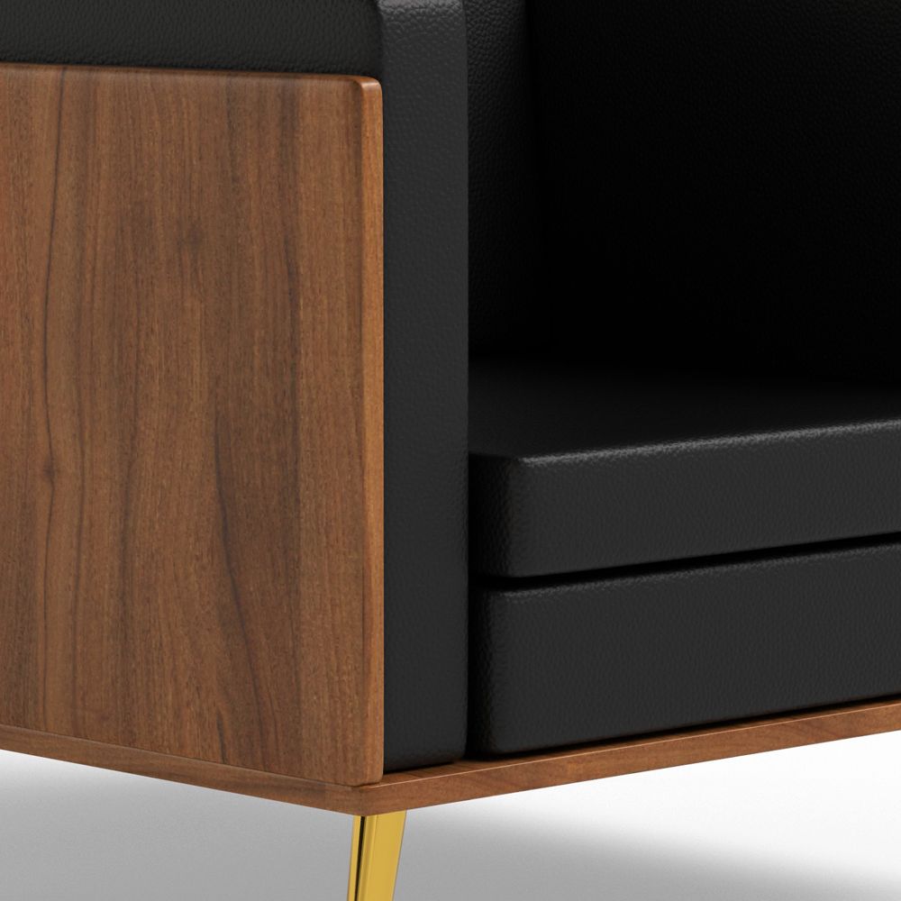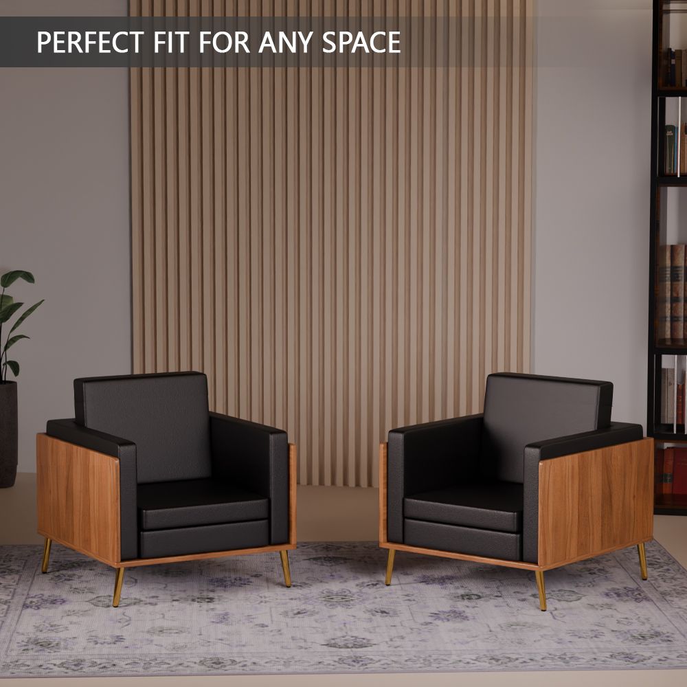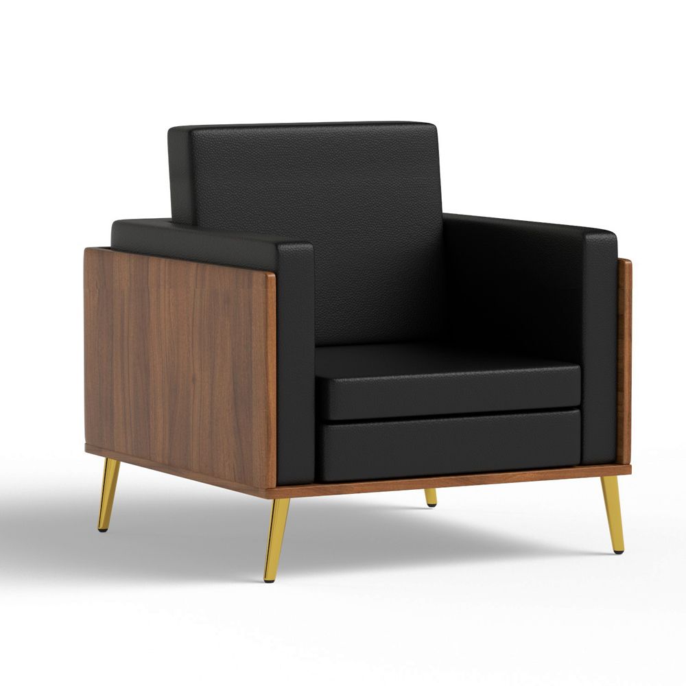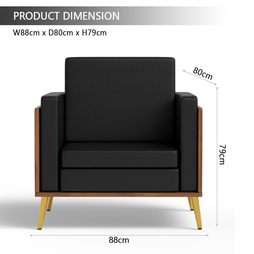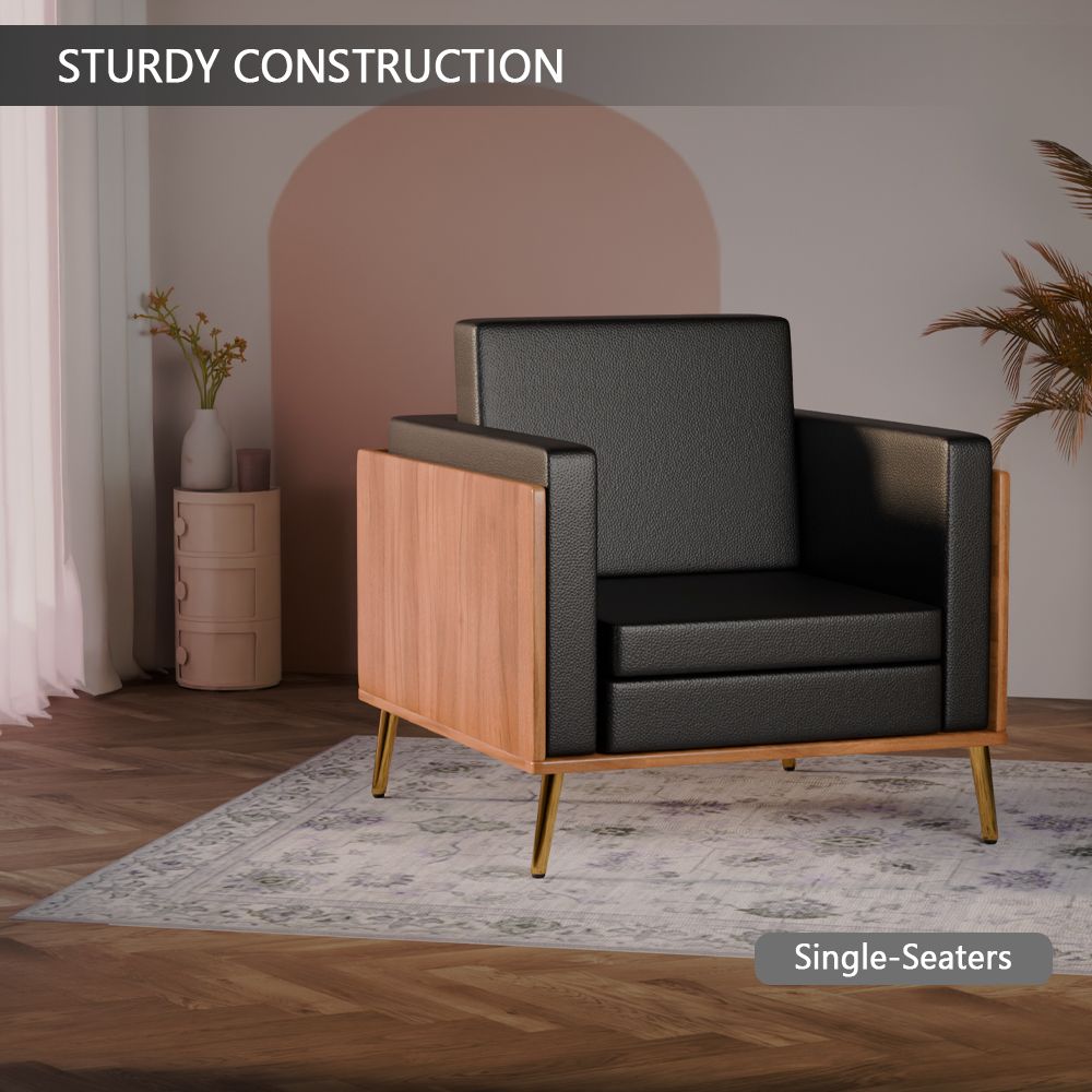 Mahmayi KD 3326 Stylish Single Seat Natural Dijon Walnut Wooden Sofa with Golden Legs and Comfortable PU Cushion, Durable and Space Saving Design, Ideal for Home, Office, Living Room and Lounge Area - Black