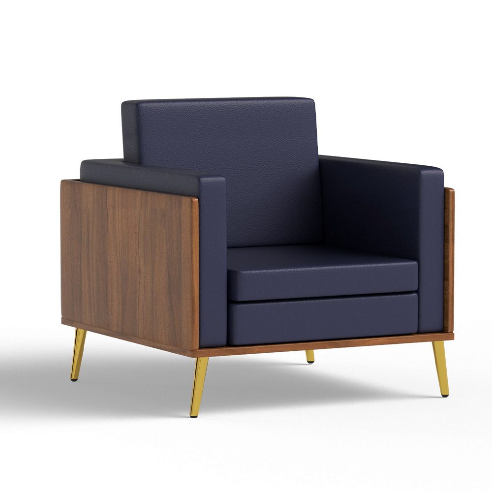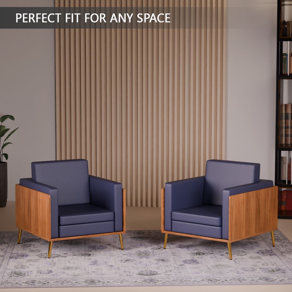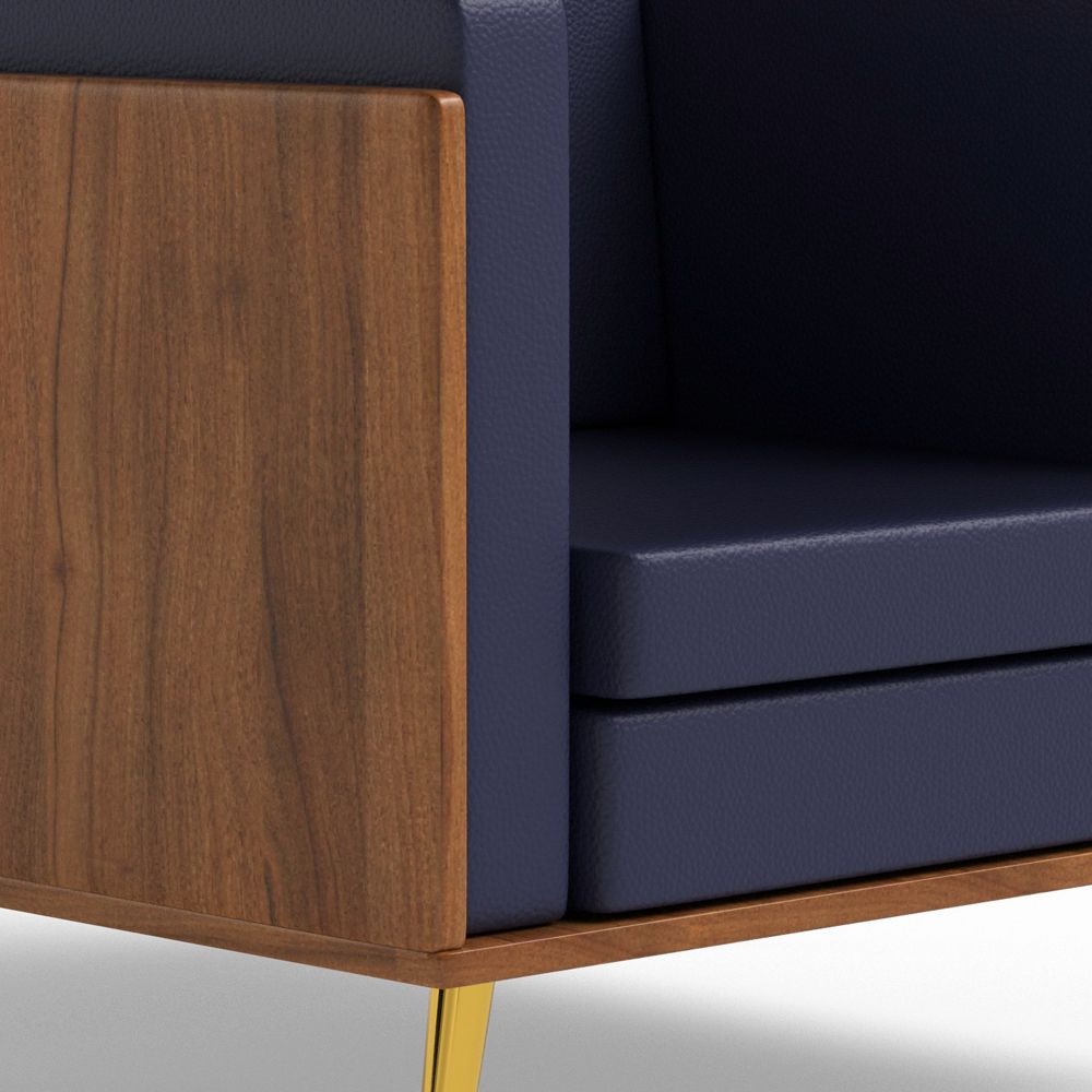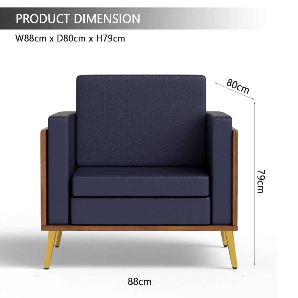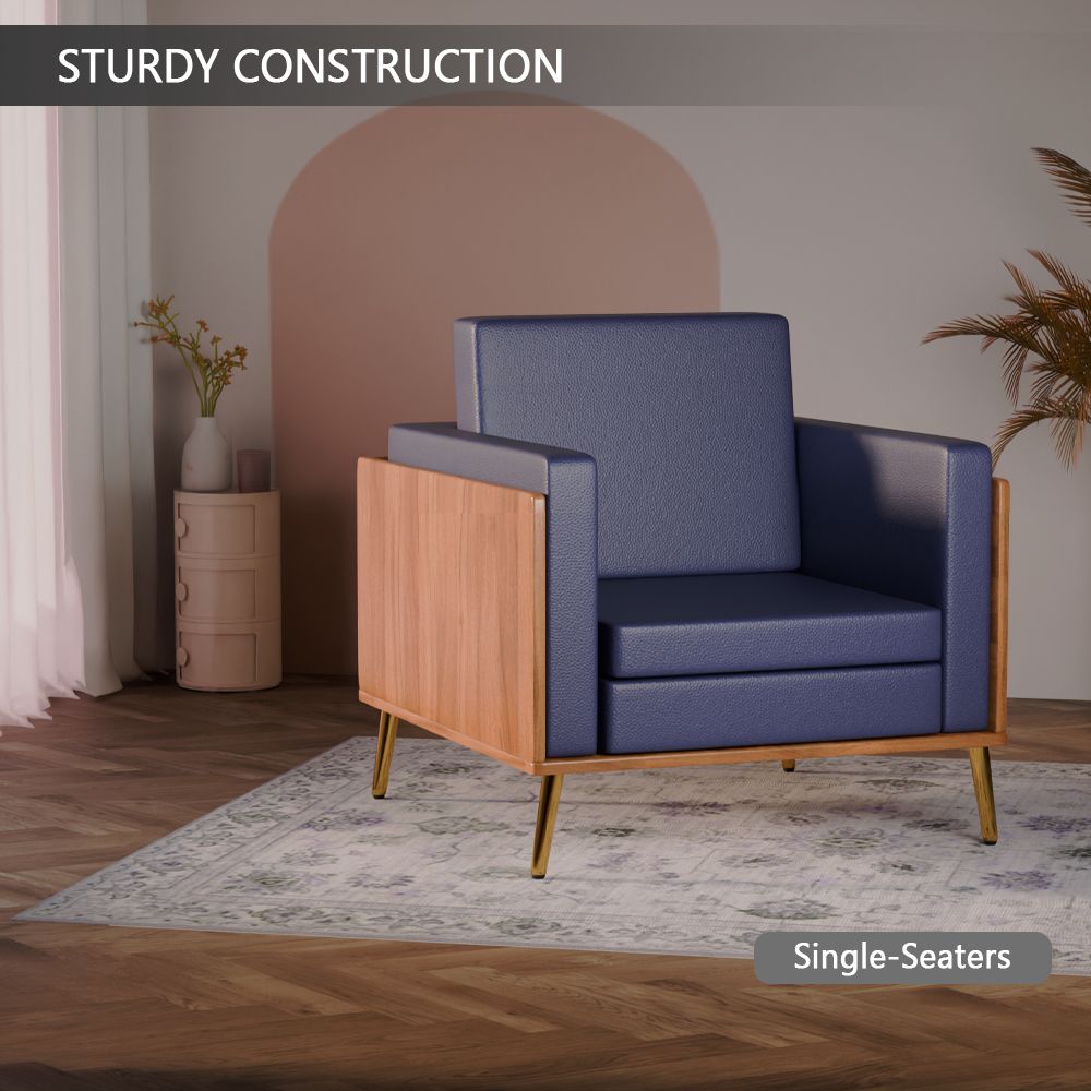 Mahmayi KD 3326 Stylish Single Seat Natural Dijon Walnut Wooden Sofa with Golden Legs and Comfortable PU Cushion, Durable and Space Saving Design, Ideal for Home, Office, Living Room and Lounge Area - Blue