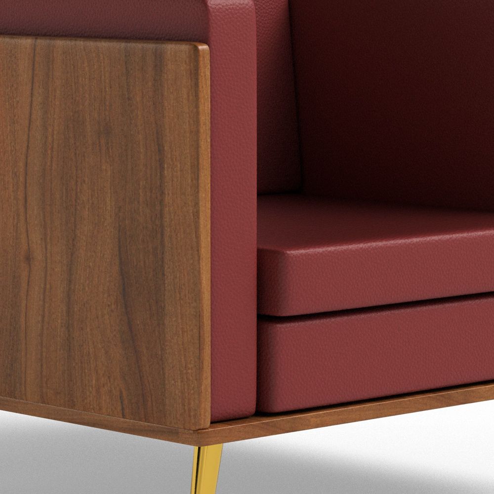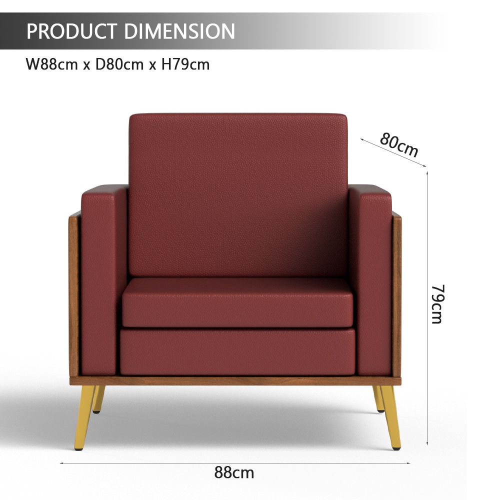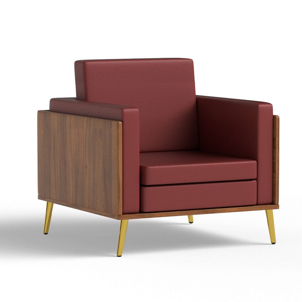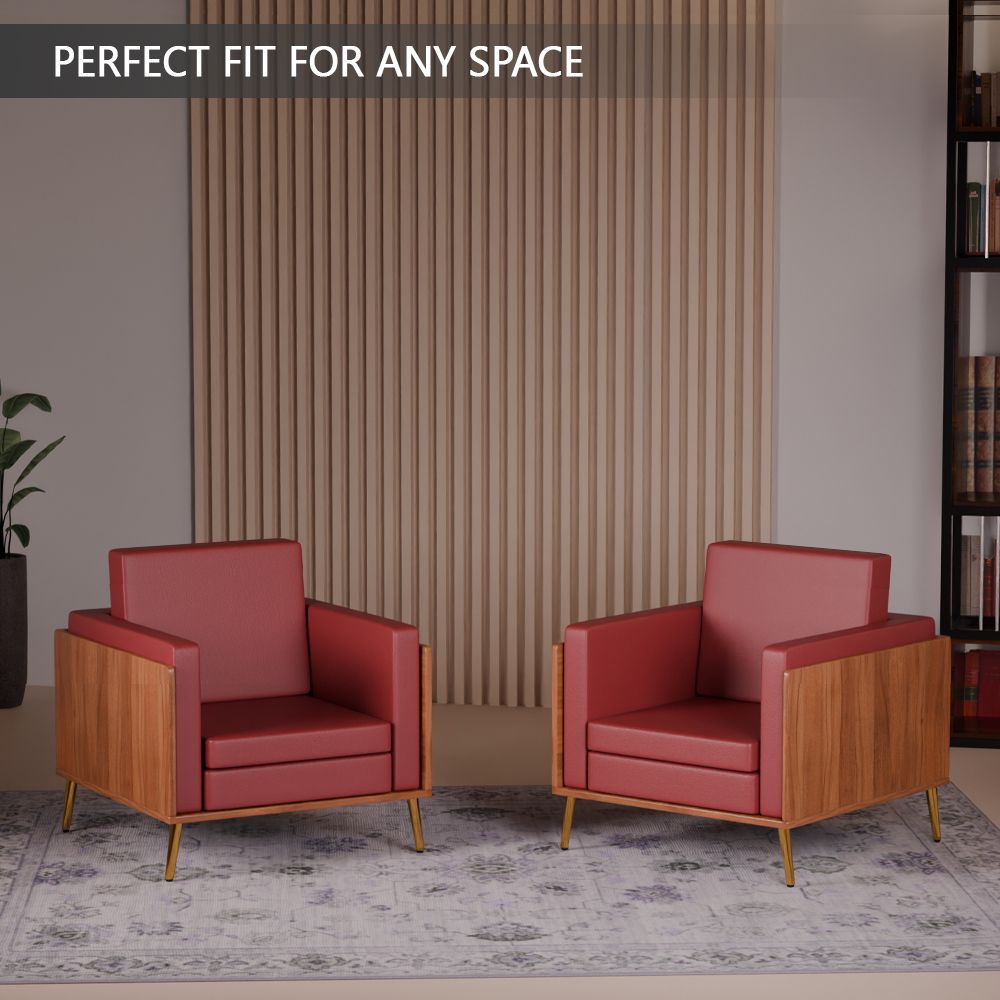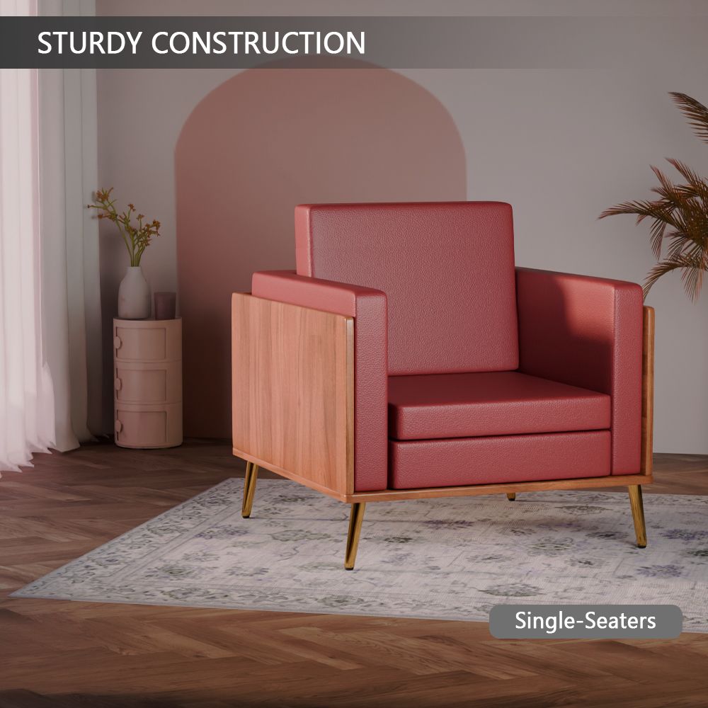 Mahmayi KD 3326 Stylish Single Seat Natural Dijon Walnut Wooden Sofa with Golden Legs and Comfortable PU Cushion, Durable and Space Saving Design, Ideal for Home, Office, Living Room and Lounge Area - Maroon