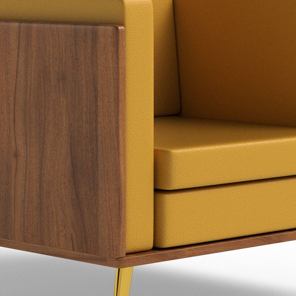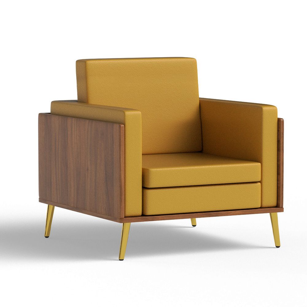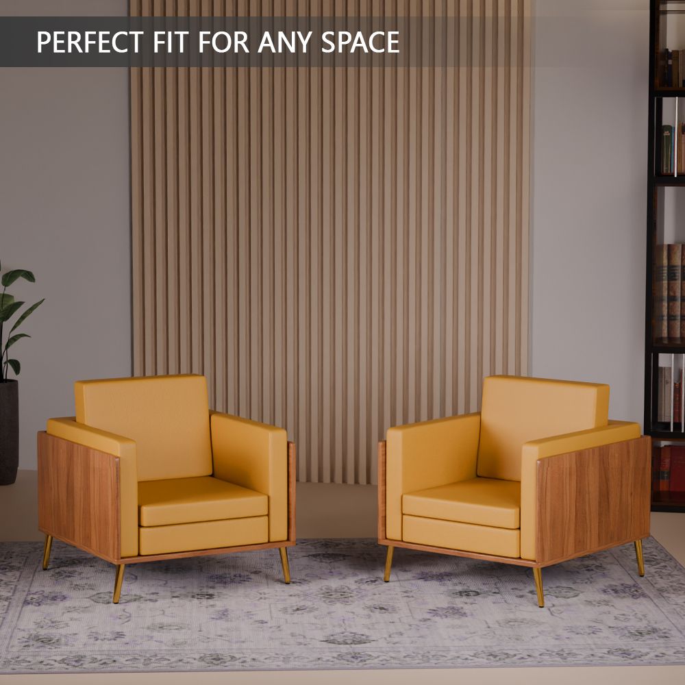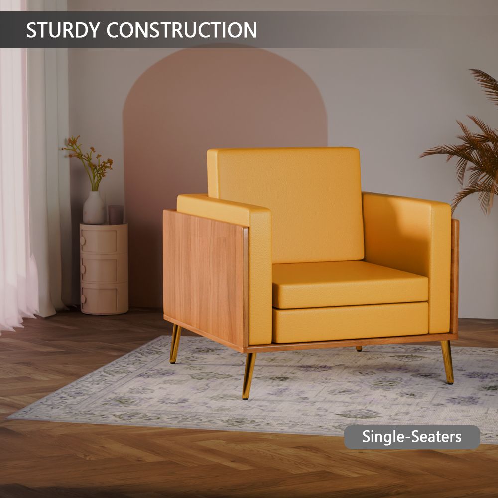 Mahmayi KD 3326 Stylish Single Seat Natural Dijon Walnut Wooden Sofa with Golden Legs and Comfortable PU Cushion, Durable and Space Saving Design, Ideal for Home, Office, Living Room and Lounge Area - Sandal