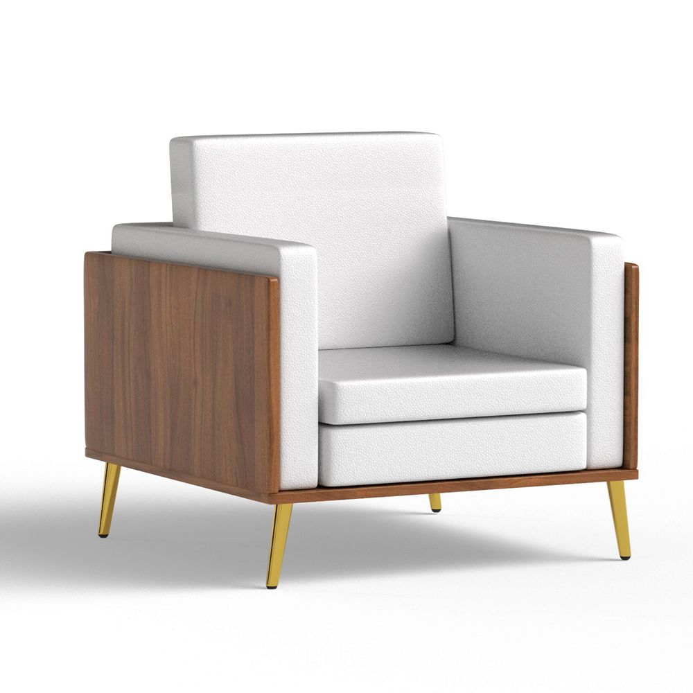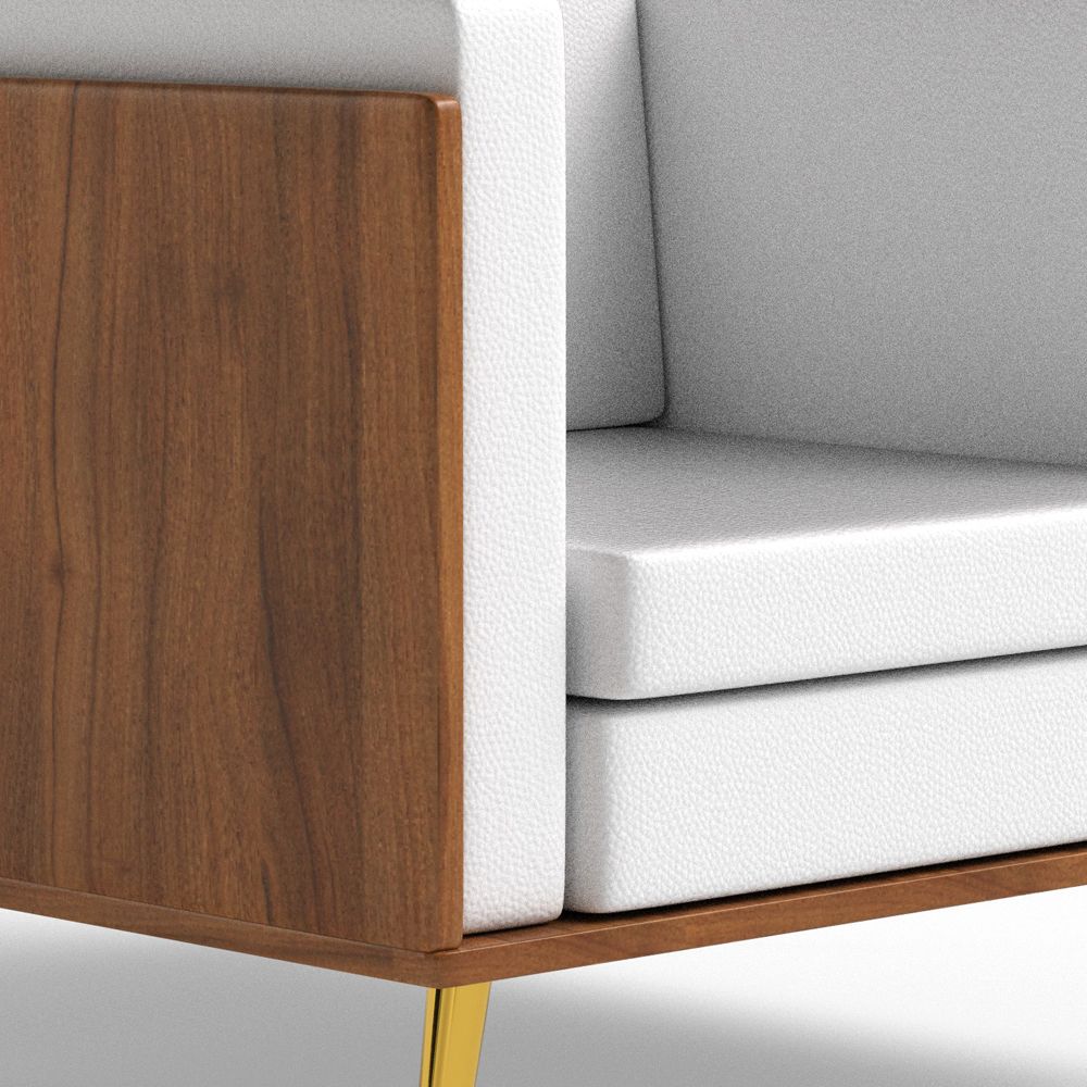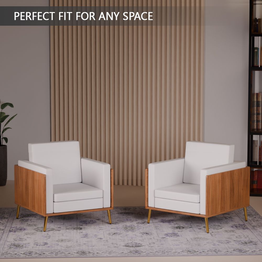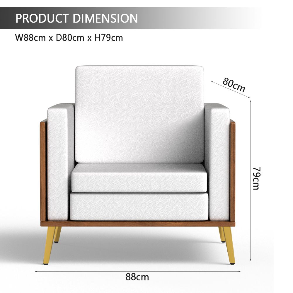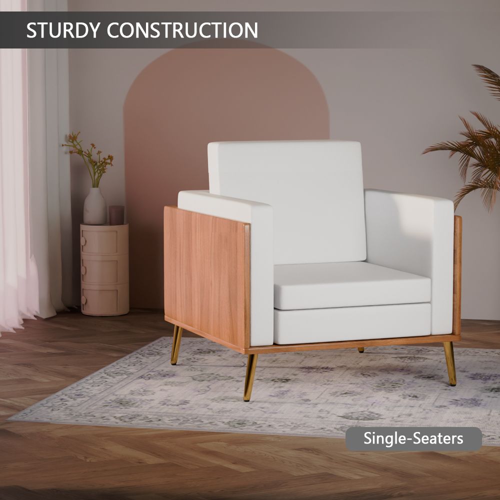Mahmayi KD 3326 Stylish Single Seat Natural Dijon Walnut Wooden Sofa with Golden Legs and Comfortable PU Cushion, Durable and Space Saving Design, Ideal for Home, Office, Living Room and Lounge Area - White