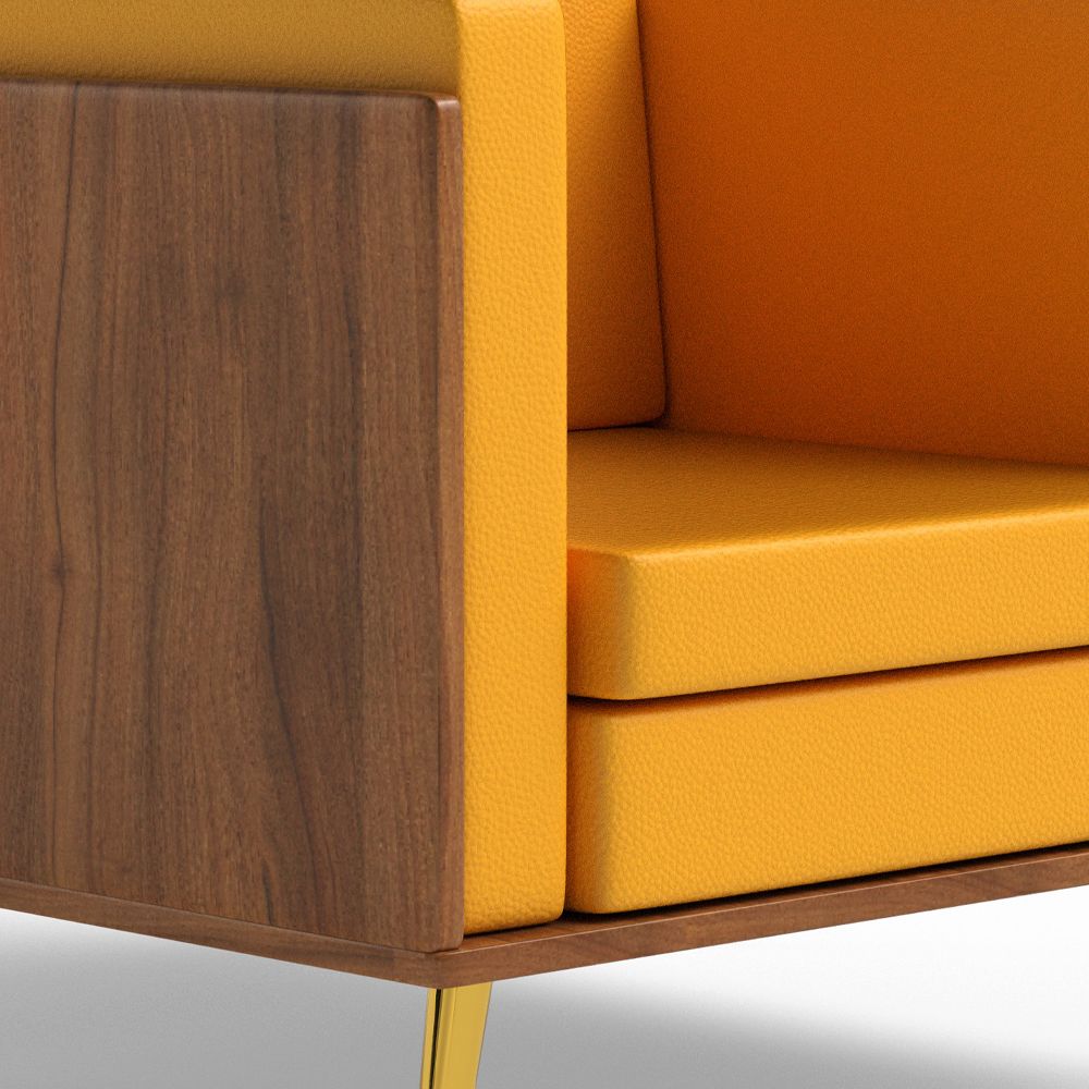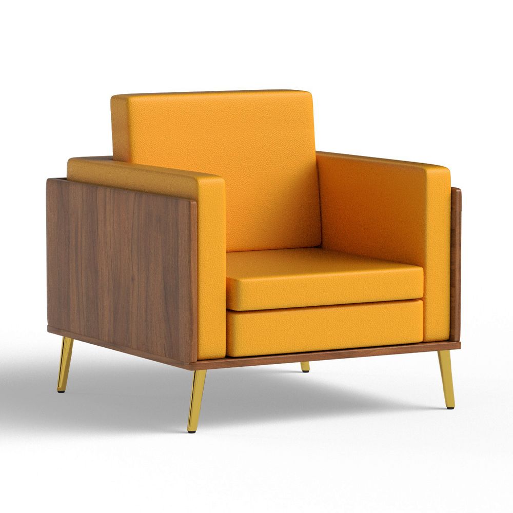 Mahmayi KD 3326 Stylish Single Seat Natural Dijon Walnut Wooden Sofa with Golden Legs and Comfortable PU Cushion, Durable and Space Saving Design, Ideal for Home, Office, Living Room and Lounge Area - Yellow