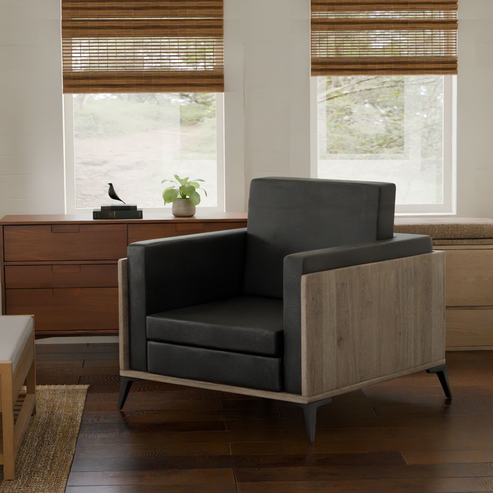 Stylish Single Seat Truffle Davos Oak Wooden Sofa with Comfortable PU Cushion, Durable and Space Saving Design, Ideal for Home, Office, Living Room and Lounge Area - Black