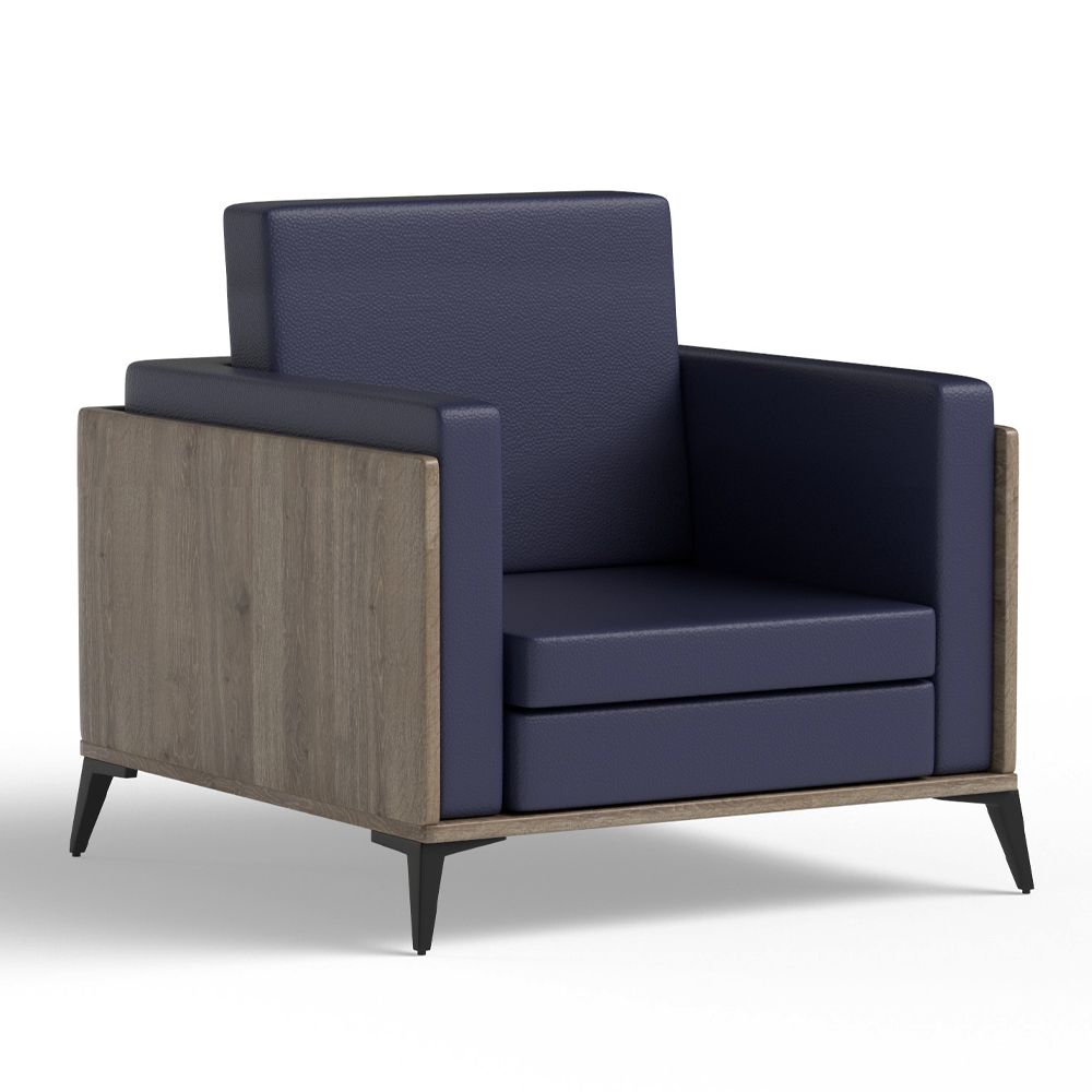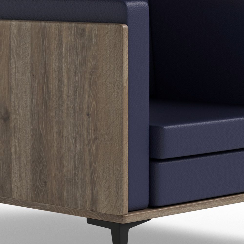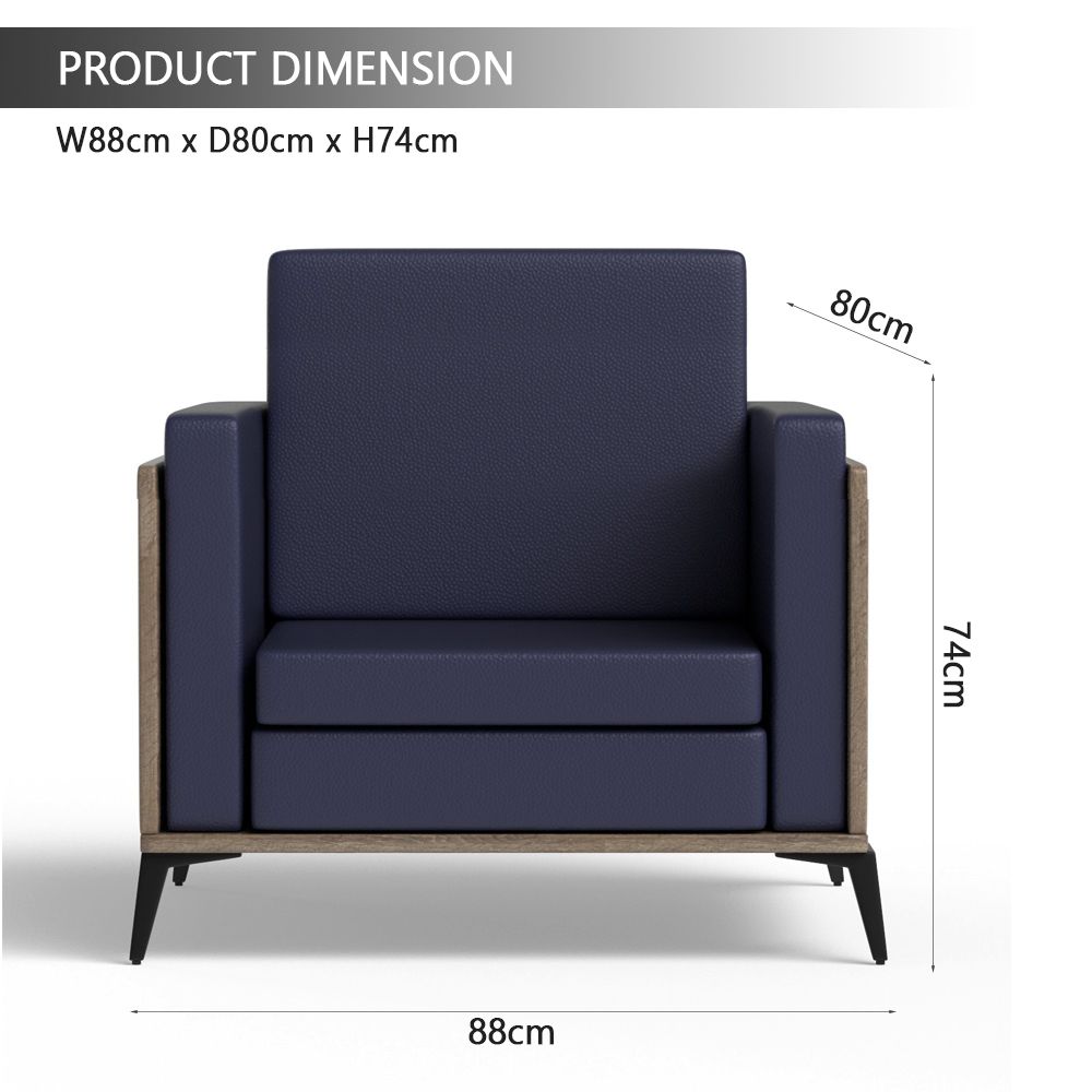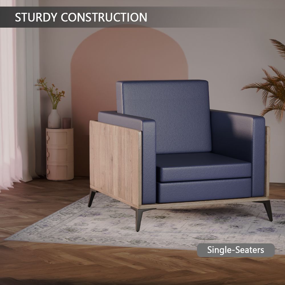 Stylish Single Seat Truffle Davos Oak Wooden Sofa with Comfortable PU Cushion, Durable and Space Saving Design, Ideal for Home, Office, Living Room and Lounge Area - Blue