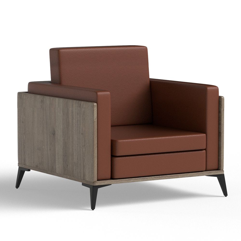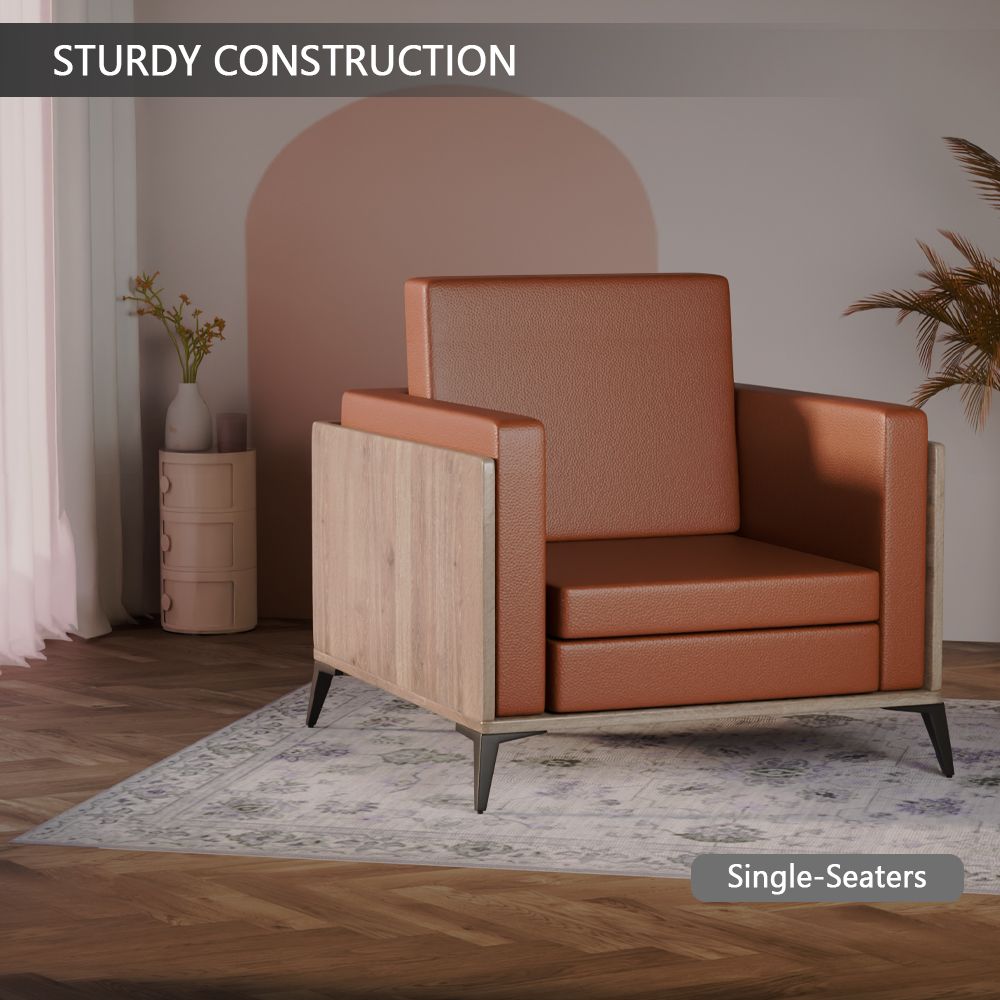 Stylish Single Seat Truffle Davos Oak Wooden Sofa with Comfortable PU Cushion, Durable and Space Saving Design, Ideal for Home, Office, Living Room and Lounge Area - Brown