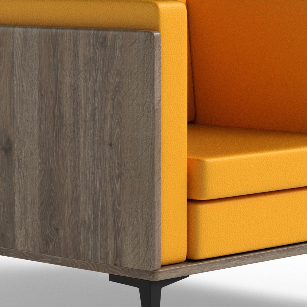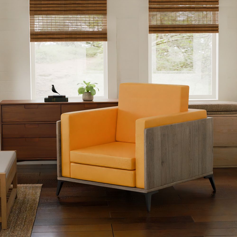 Stylish Single Seat Truffle Davos Oak Wooden Sofa with Comfortable PU Cushion, Durable and Space Saving Design, Ideal for Home, Office, Living Room and Lounge Area - Yellow