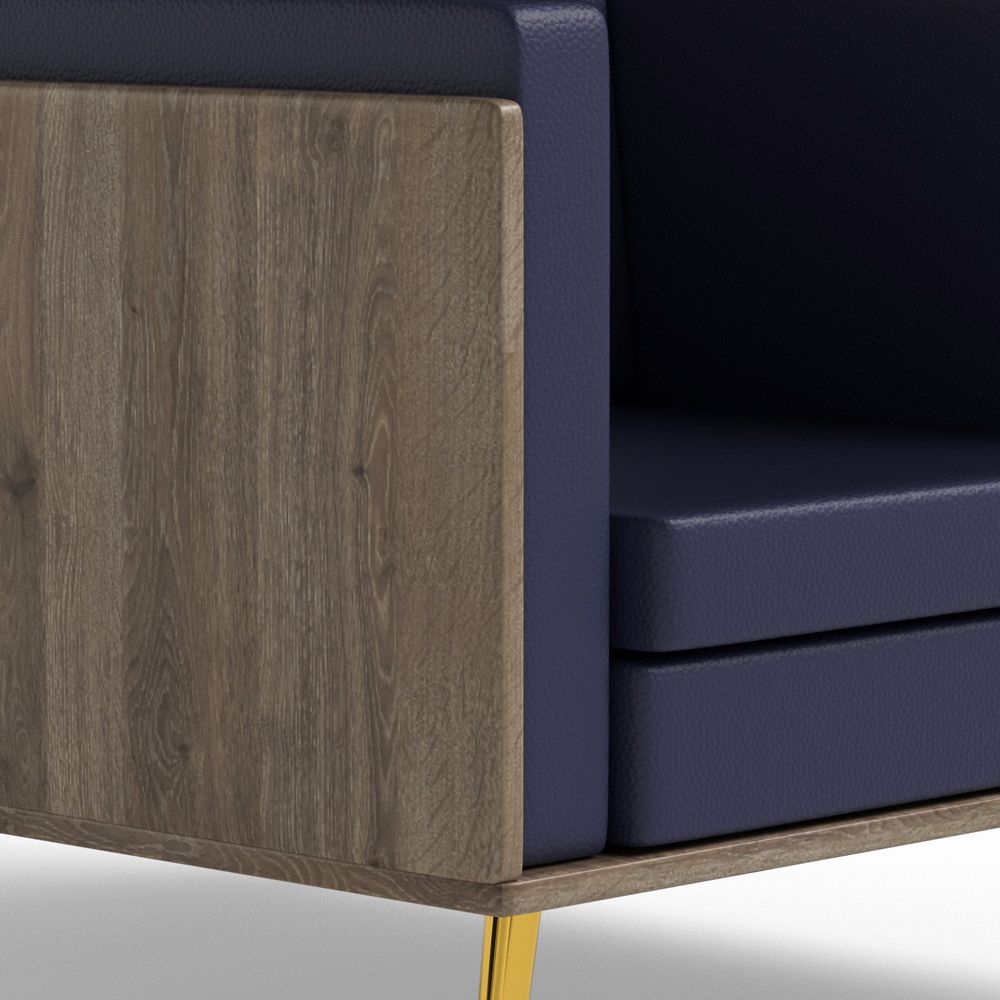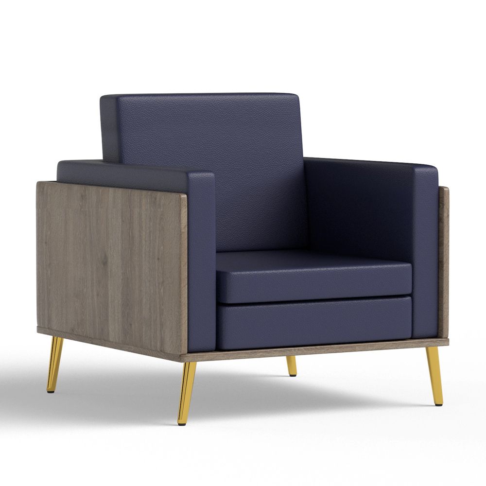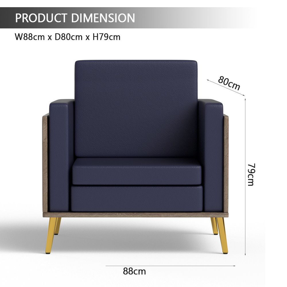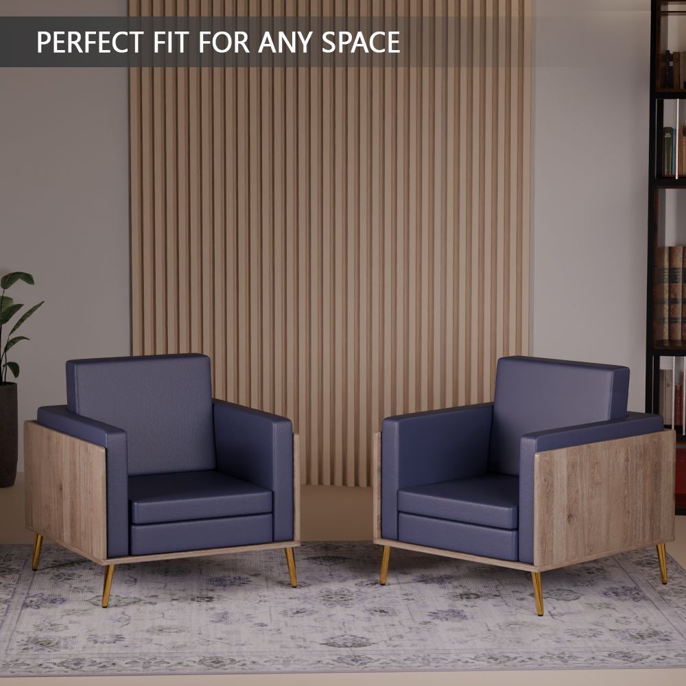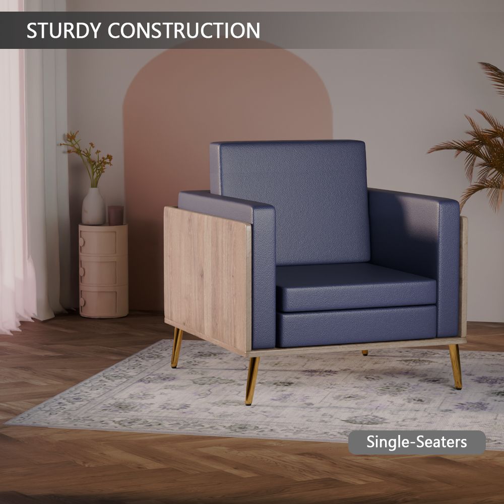 Mahmayi KD 3326 Stylish Single Seat Truffle Davos Oak Wooden Sofa with Golden Legs and Comfortable PU Cushion, Durable and Space Saving Design, Ideal for Home, Office, Living Room and Lounge Area - Blue