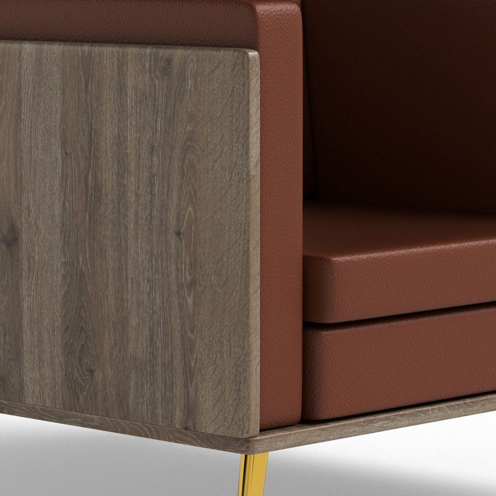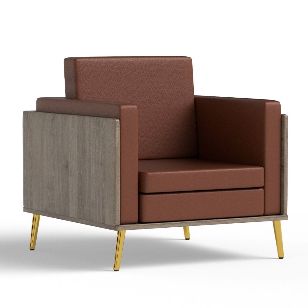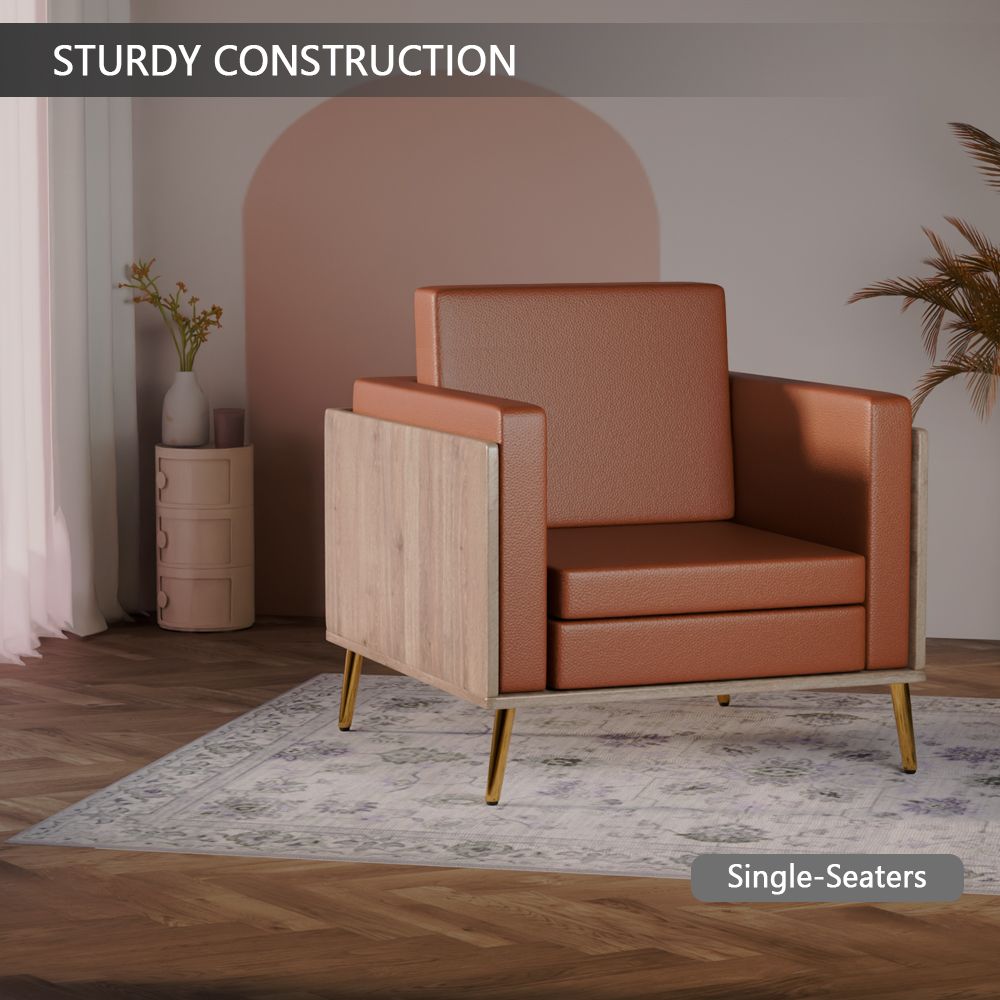 Mahmayi KD 3326 Stylish Single Seat Truffle Davos Oak Wooden Sofa with Golden Legs and Comfortable PU Cushion, Durable and Space Saving Design, Ideal for Home, Office, Living Room and Lounge Area - Brown