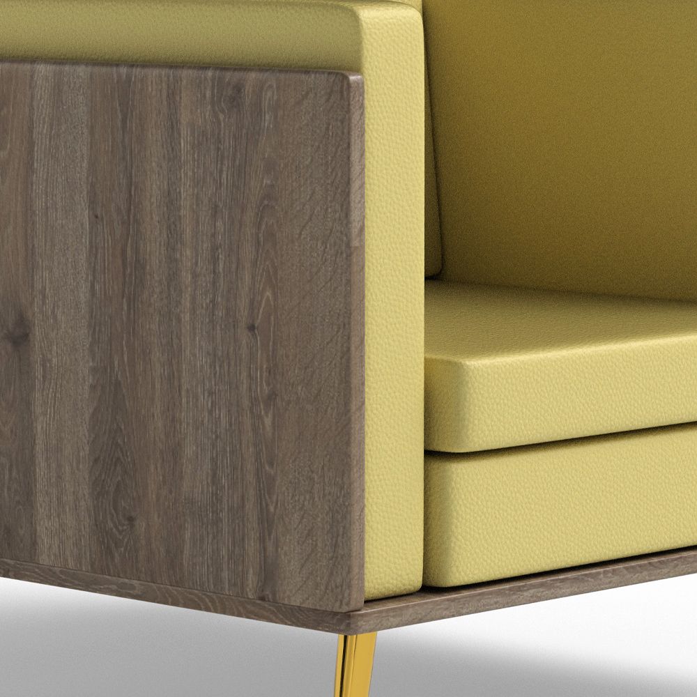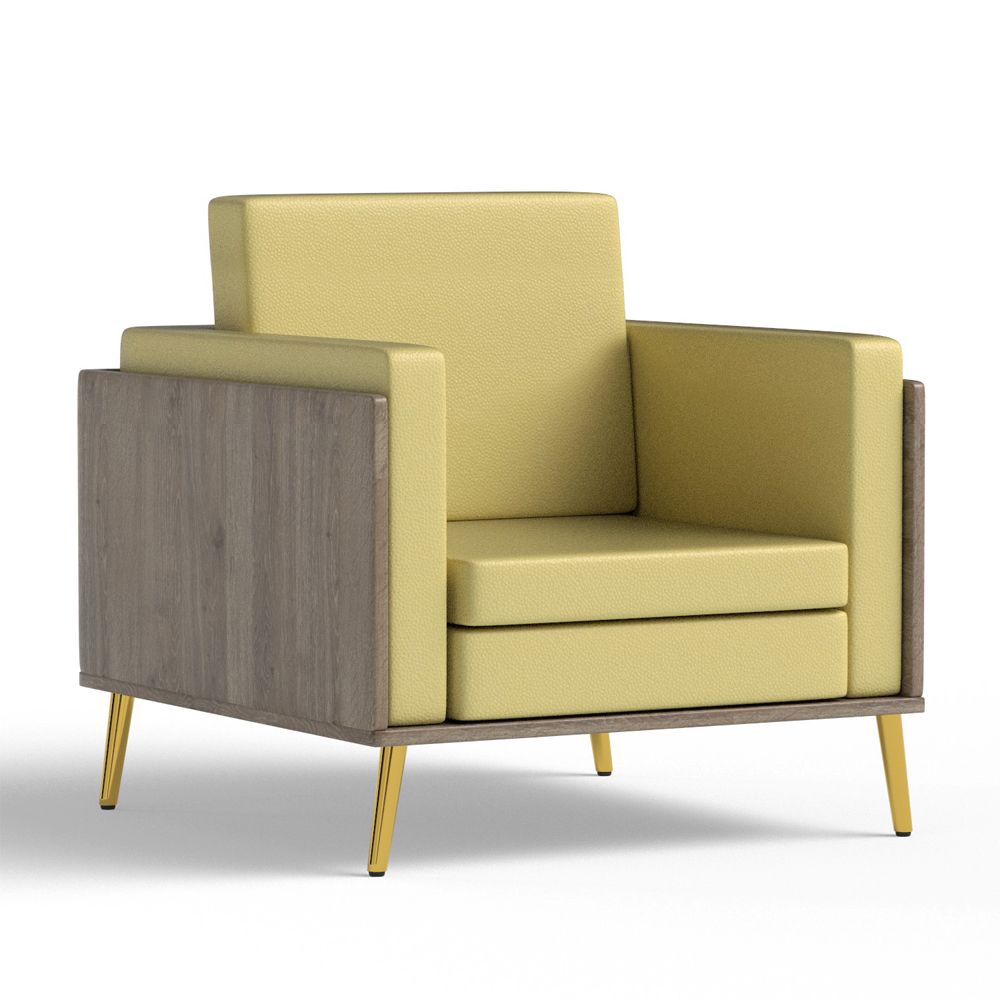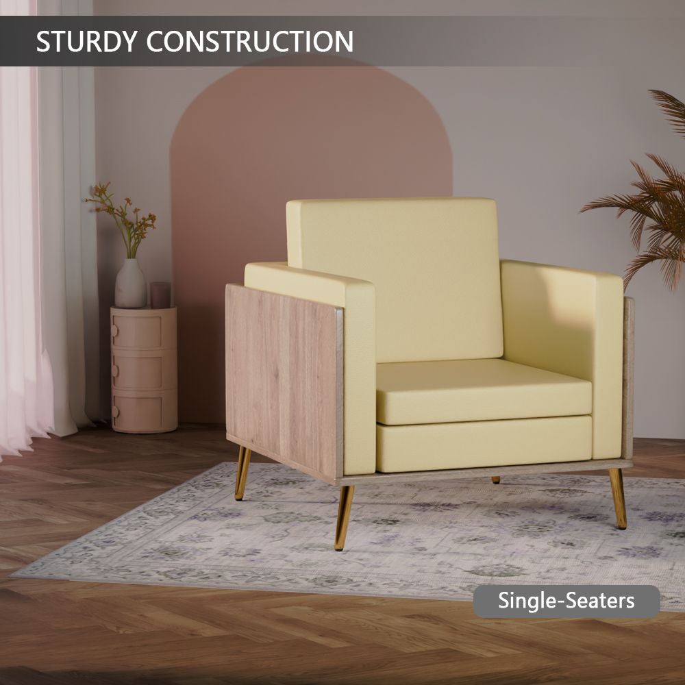 Mahmayi KD 3326 Stylish Single Seat Truffle Davos Oak Wooden Sofa with Golden Legs and Comfortable PU Cushion, Durable and Space Saving Design, Ideal for Home, Office, Living Room and Lounge Area - Light Sandal