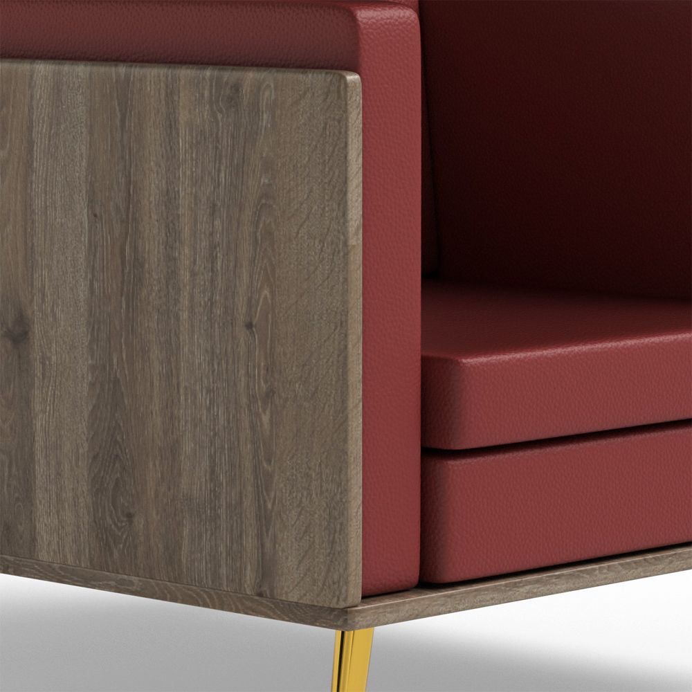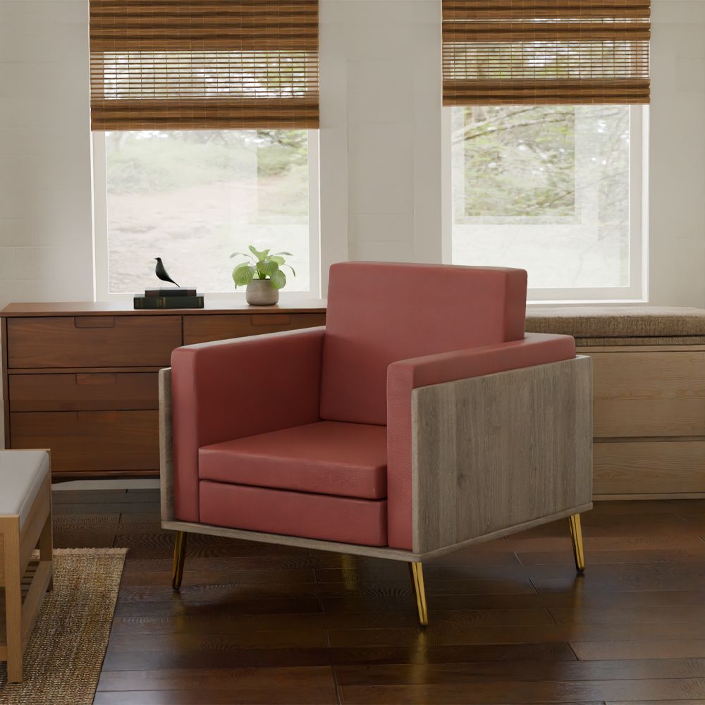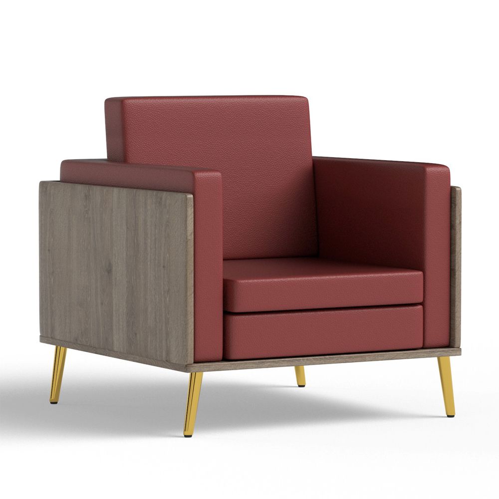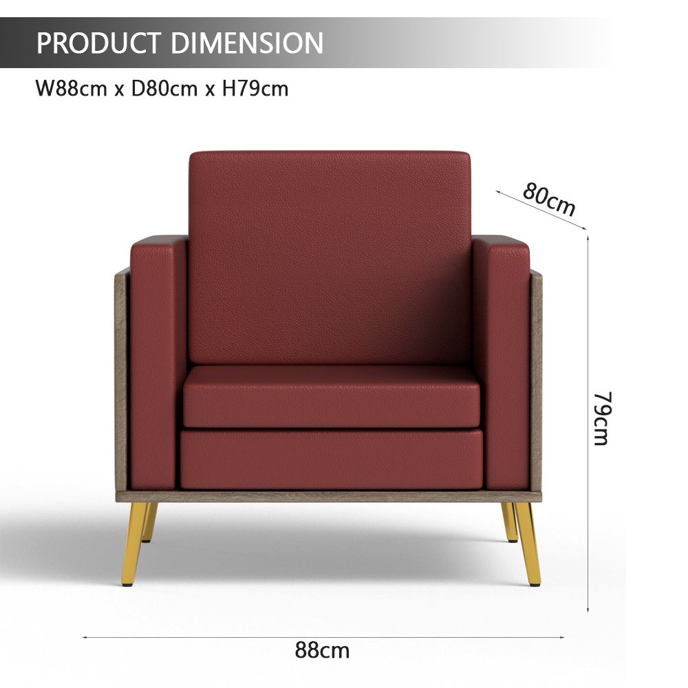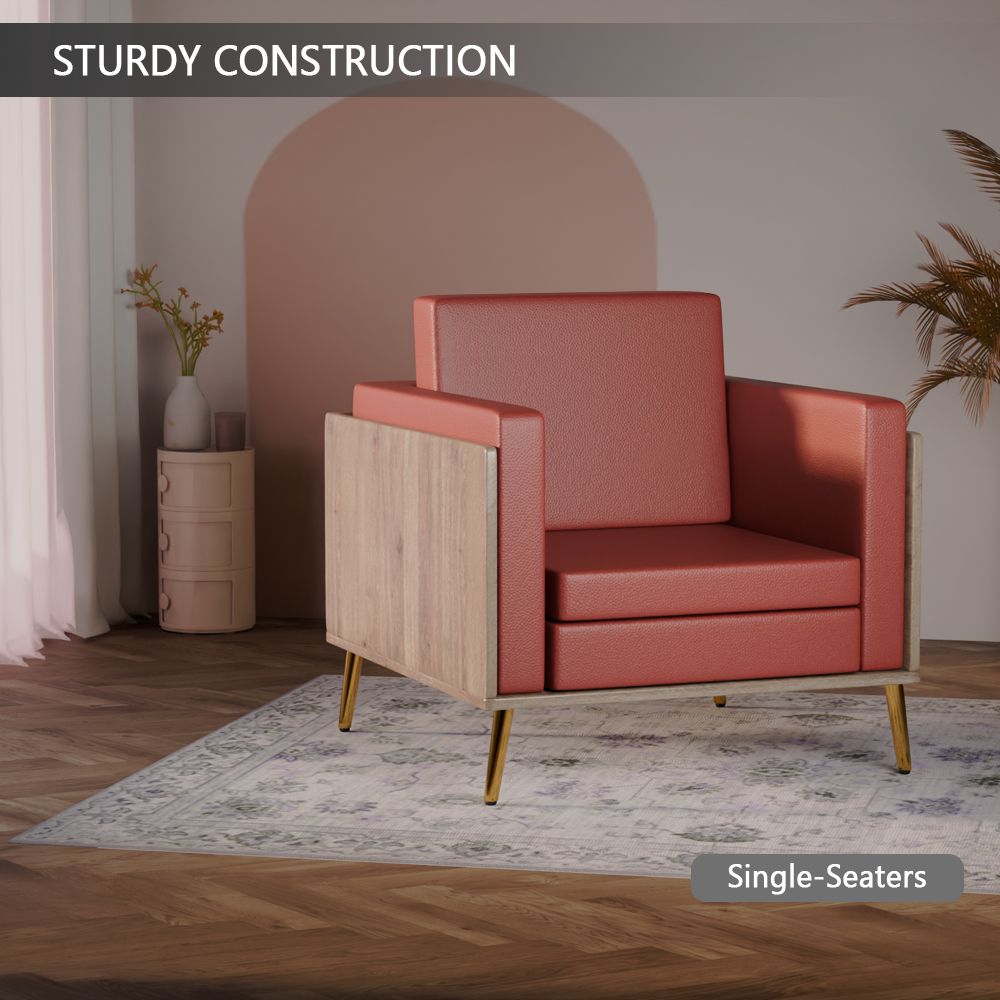 Mahmayi KD 3326 Stylish Single Seat Truffle Davos Oak Wooden Sofa with Golden Legs and Comfortable PU Cushion, Durable and Space Saving Design, Ideal for Home, Office, Living Room and Lounge Area - Maroon