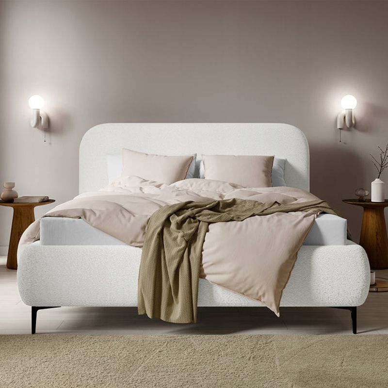 Maple Home Luxury Boucle Fabric Bed Frame Sturdy Wood Frame for Modern Bedrooms White (King Size 180*200cm) - 6 Months Warranty