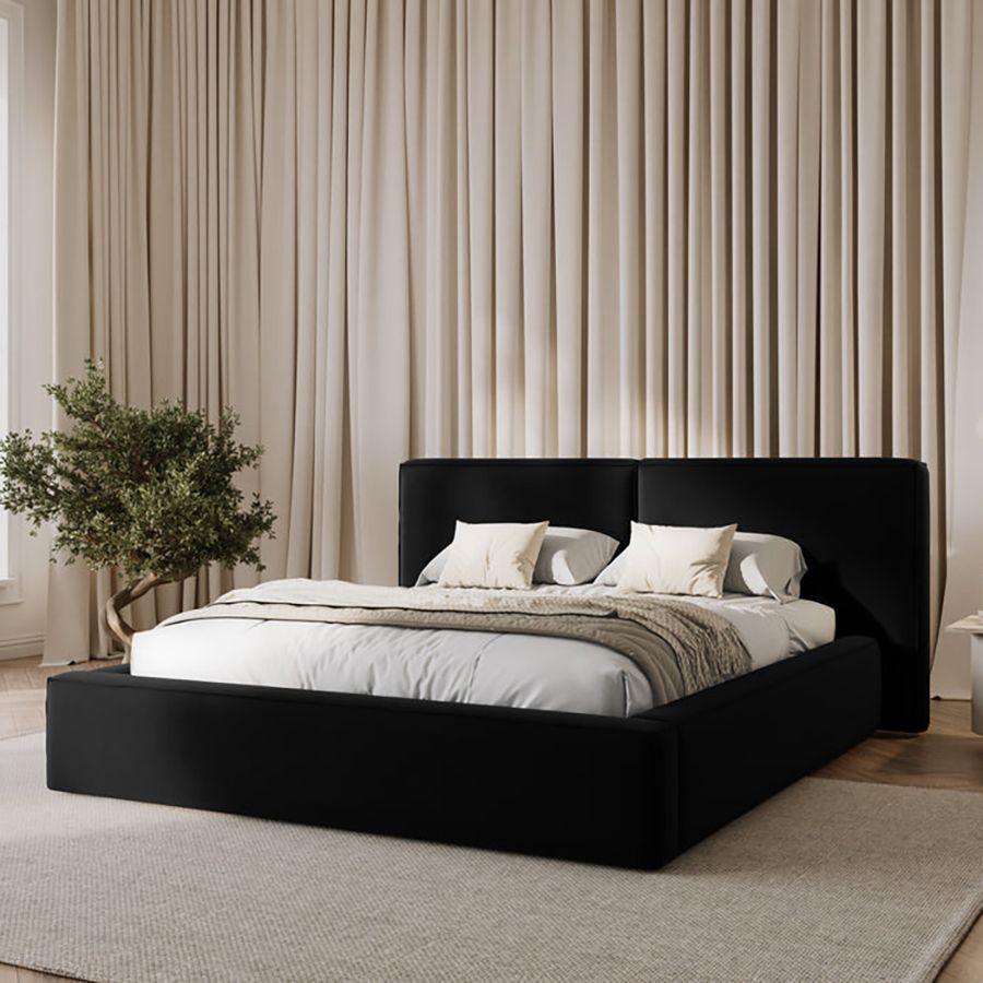 Maple Home Velvet Bed Frame Stylish Upholstered Design for Modern & Classic Bedrooms (Black King Size 180*200cm) - 6 Months Warranty