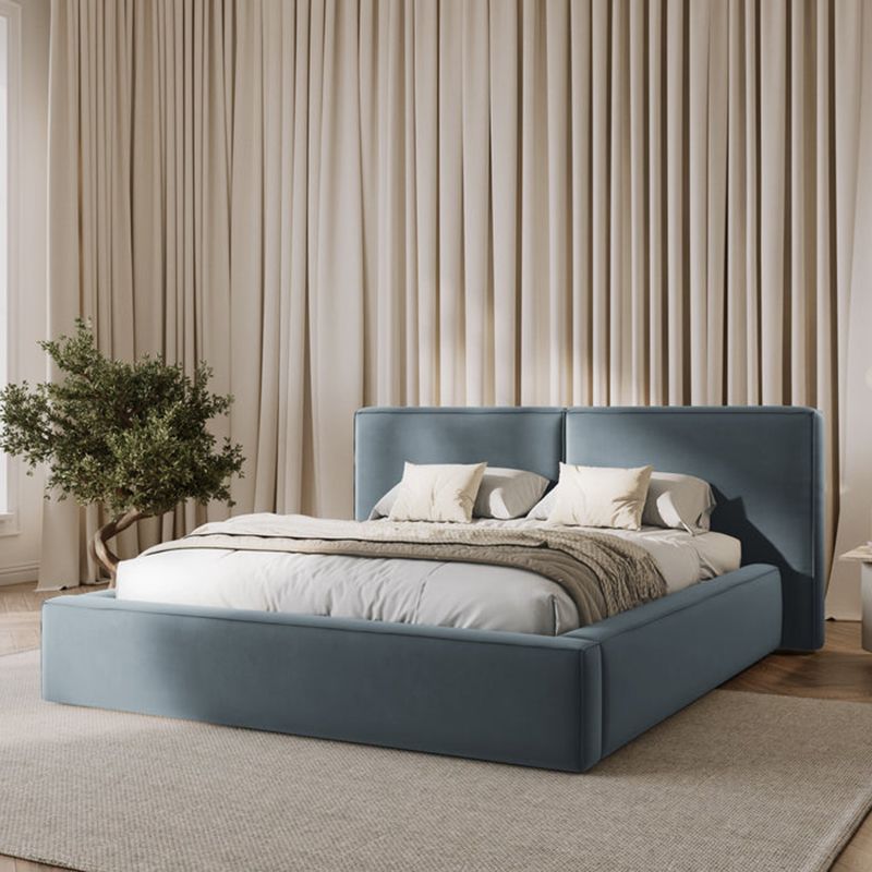 Maple Home Velvet Bed Frame Stylish Upholstered Design for Modern & Classic Bedrooms (Light Blue King Size 180*200cm) - 6 Months Warranty