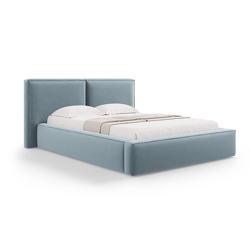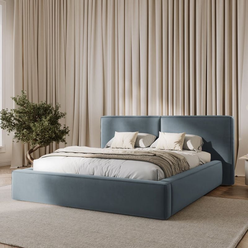 Maple Home Velvet Bed Frame Stylish Upholstered Design for Modern & Classic Bedrooms (Light Blue Queen Size 160*200cm) - 6 Months Warranty