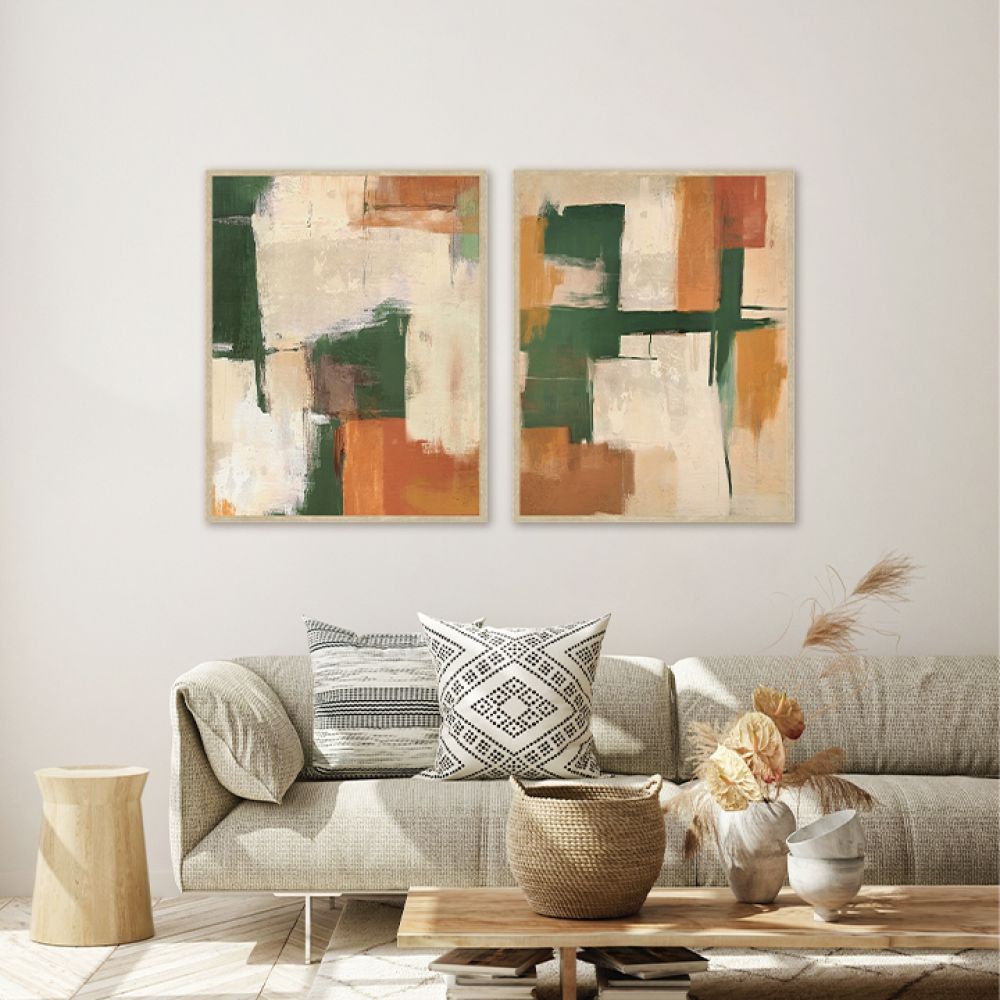 Marrakech Moss 2 Piece Handpainted Wall Art Set 40X50Cm