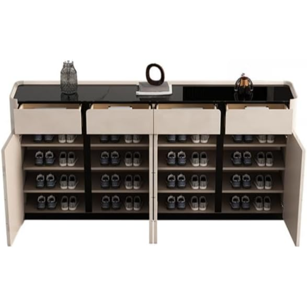 Storage Capacity: Multiple enclosed compartments for hidden storage up to 32 pairs of shoes, and four drawers.