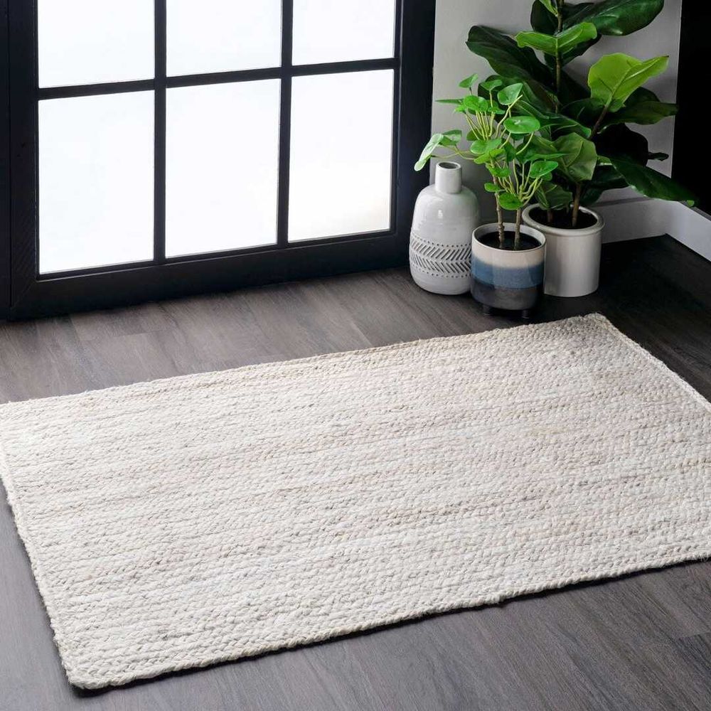 Pai Rug-Jute, Wool & Cotton Style-White-200 x 300 cm (6.6 x 9.8 ft)