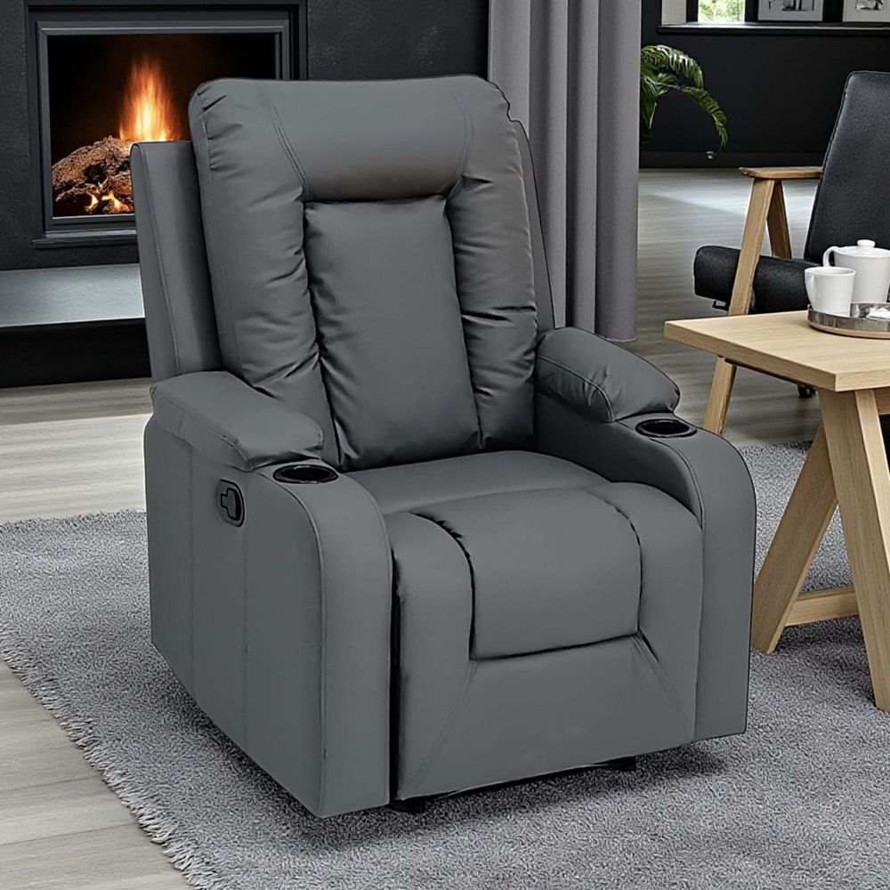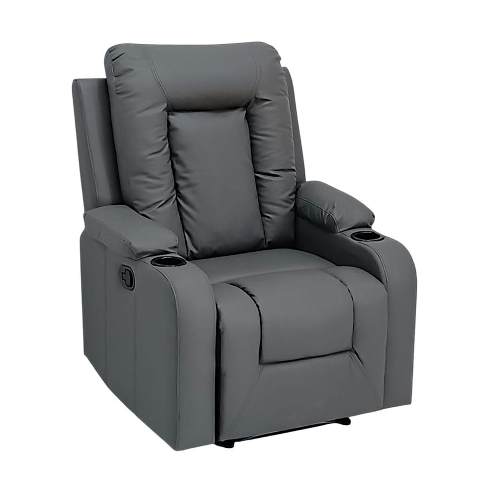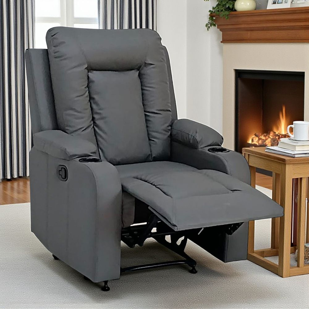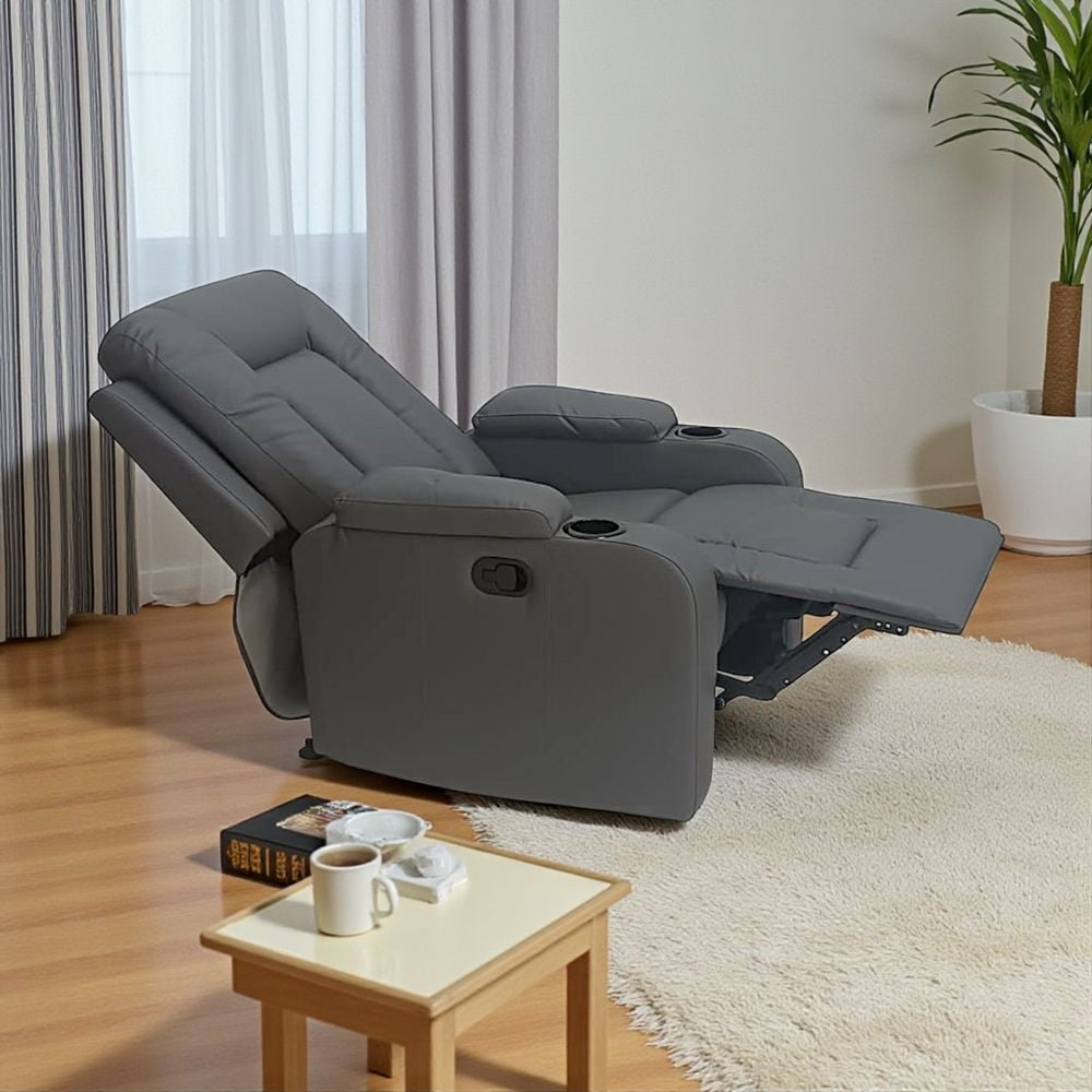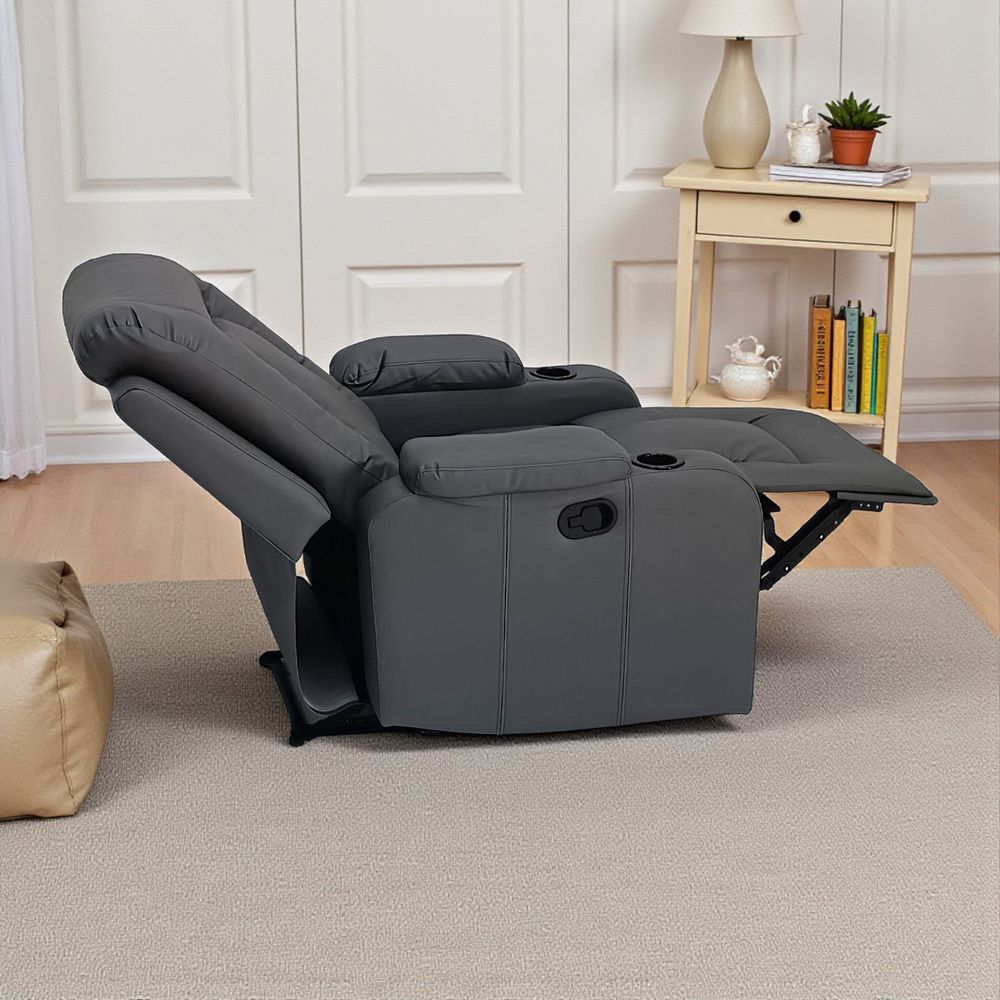 SBF Single Seater PU Leather Manual Recliner with Cup Holders - Modern Design, Ultimate Comfort, One-Seat Relaxing Chair, Ideal for Living Room and Home Relaxation Experience (Grey)