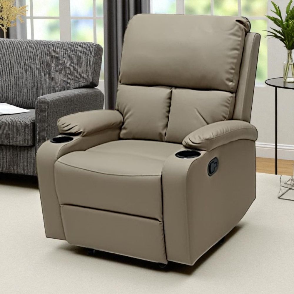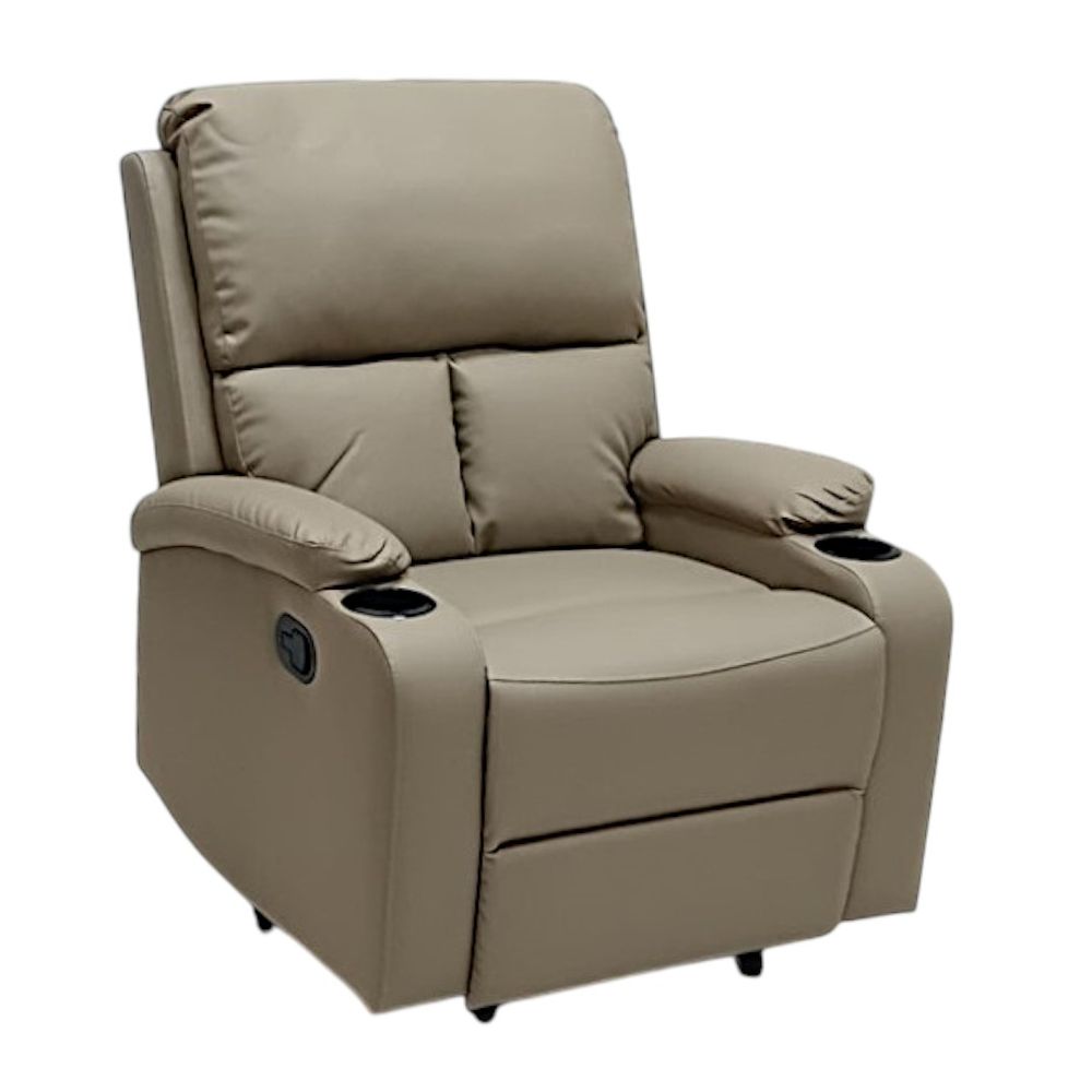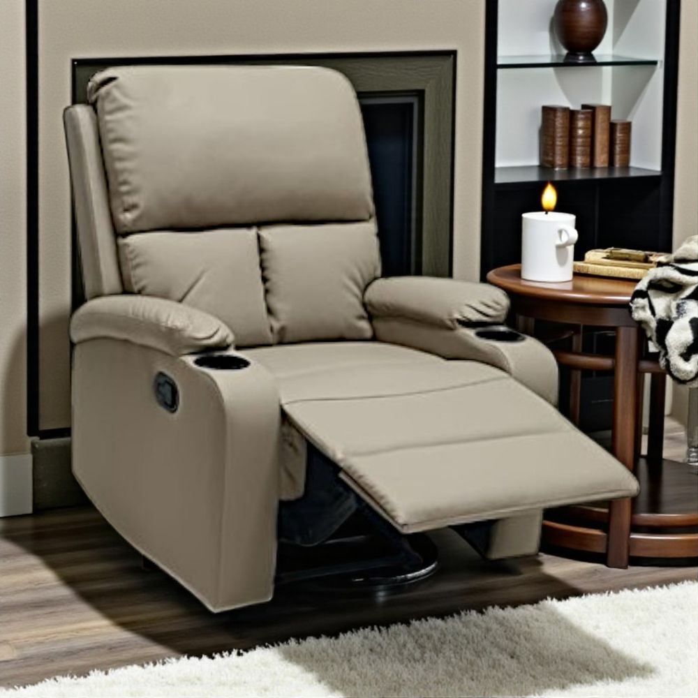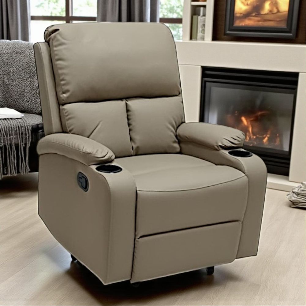SBF Single Seater PU Leather Manual Recliner with Cup Holders - Modern Design, Ultimate Comfort, One-Seat Relaxing Chair, Ideal Living Room Furniture For Home Relaxation Experience, Beige
