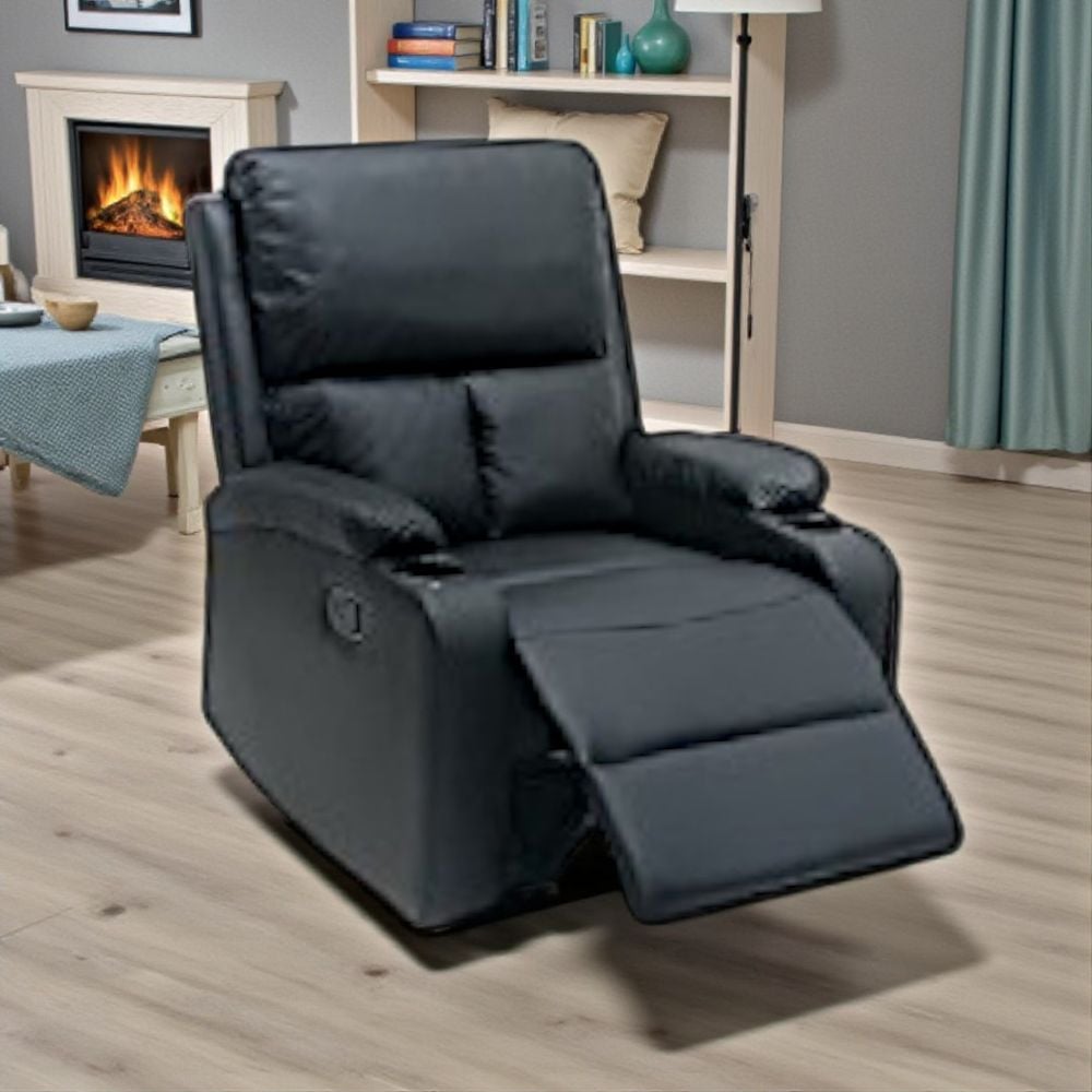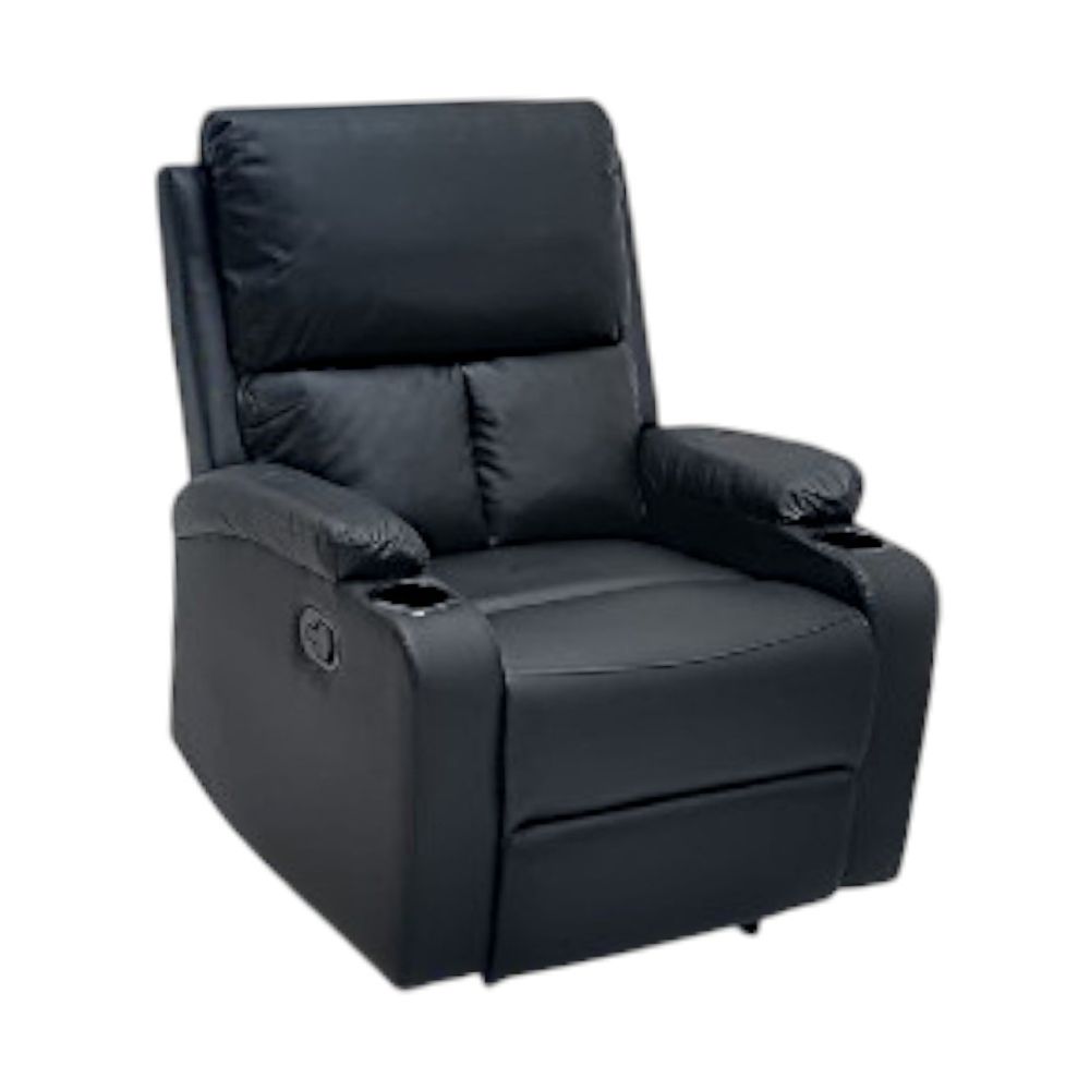 SBF Single Seater PU Leather Manual Recliner with Cup Holders - Modern Design, Ultimate Comfort, One-Seat Relaxing Chair, Ideal Living Room Furniture For Home Relaxation Experience, Black