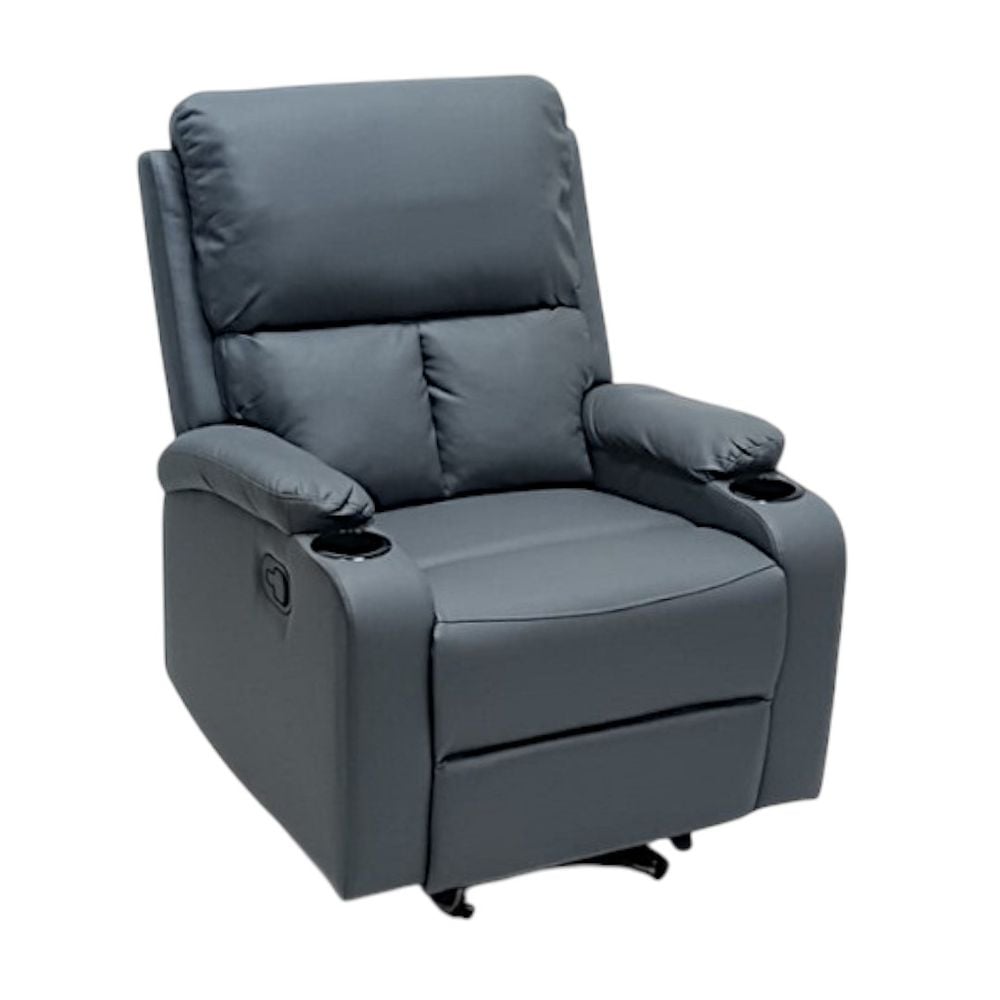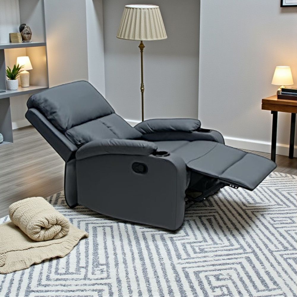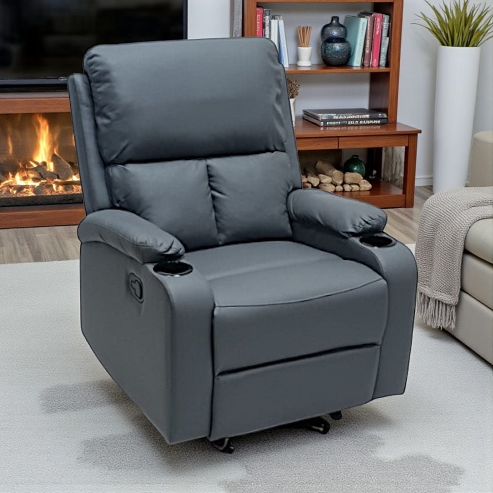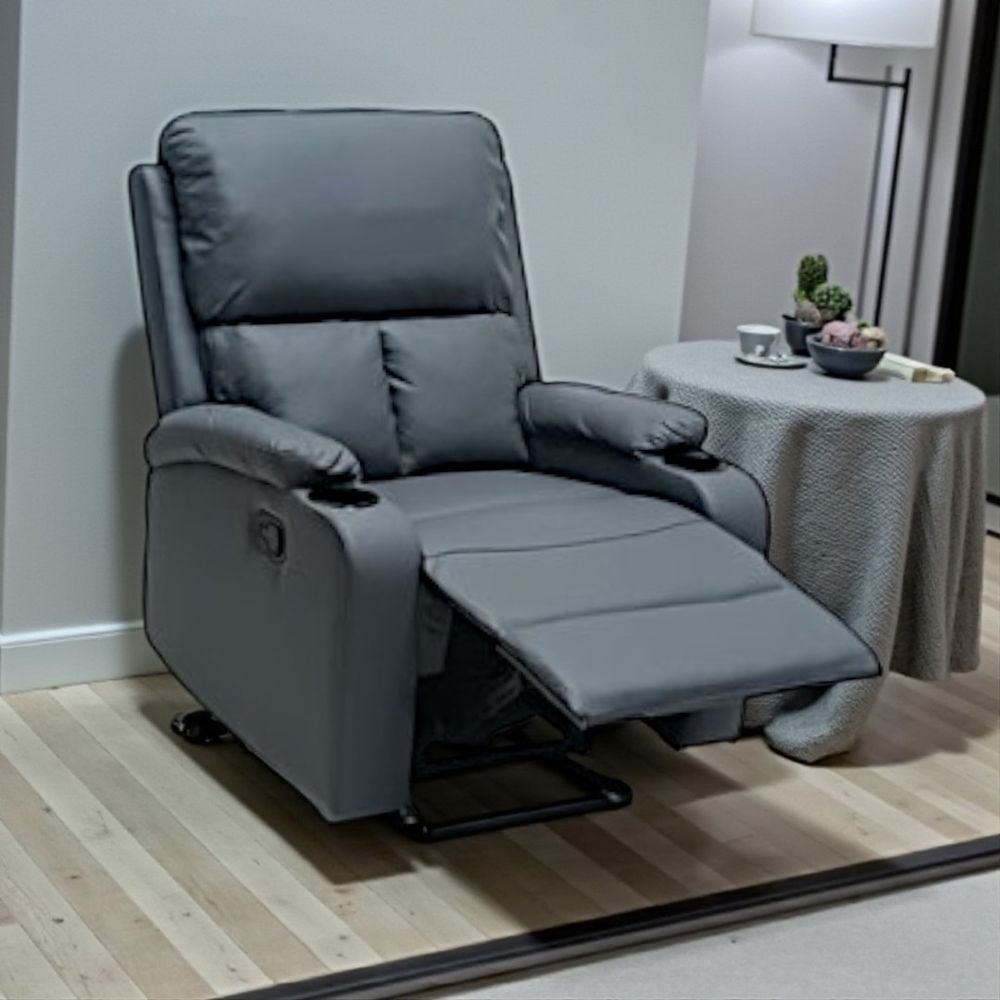 SBF Single Seater PU Leather Manual Recliner with Cup Holders - Modern Design, Ultimate Comfort, One-Seat Relaxing Chair, Ideal Living Room Furniture For Home Relaxation Experience, Grey