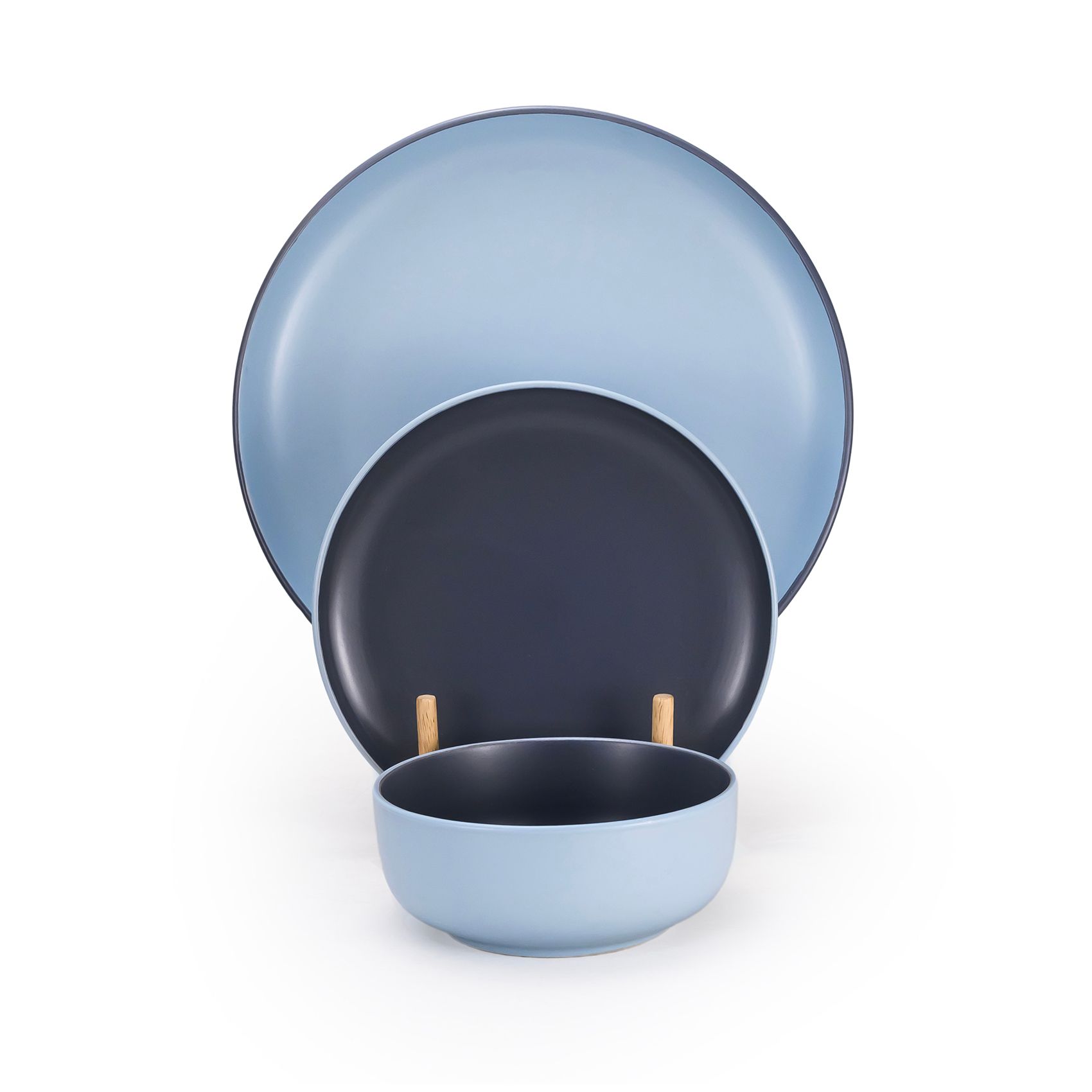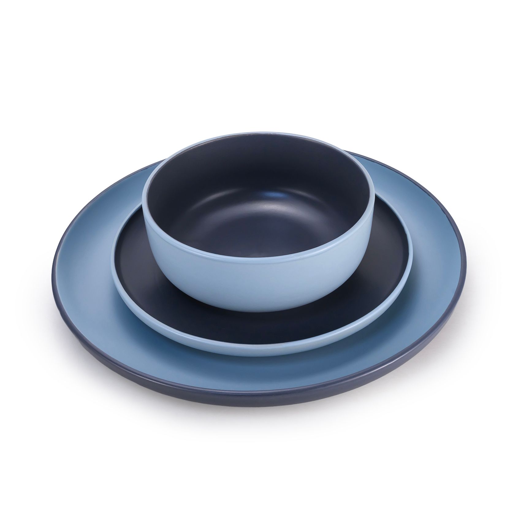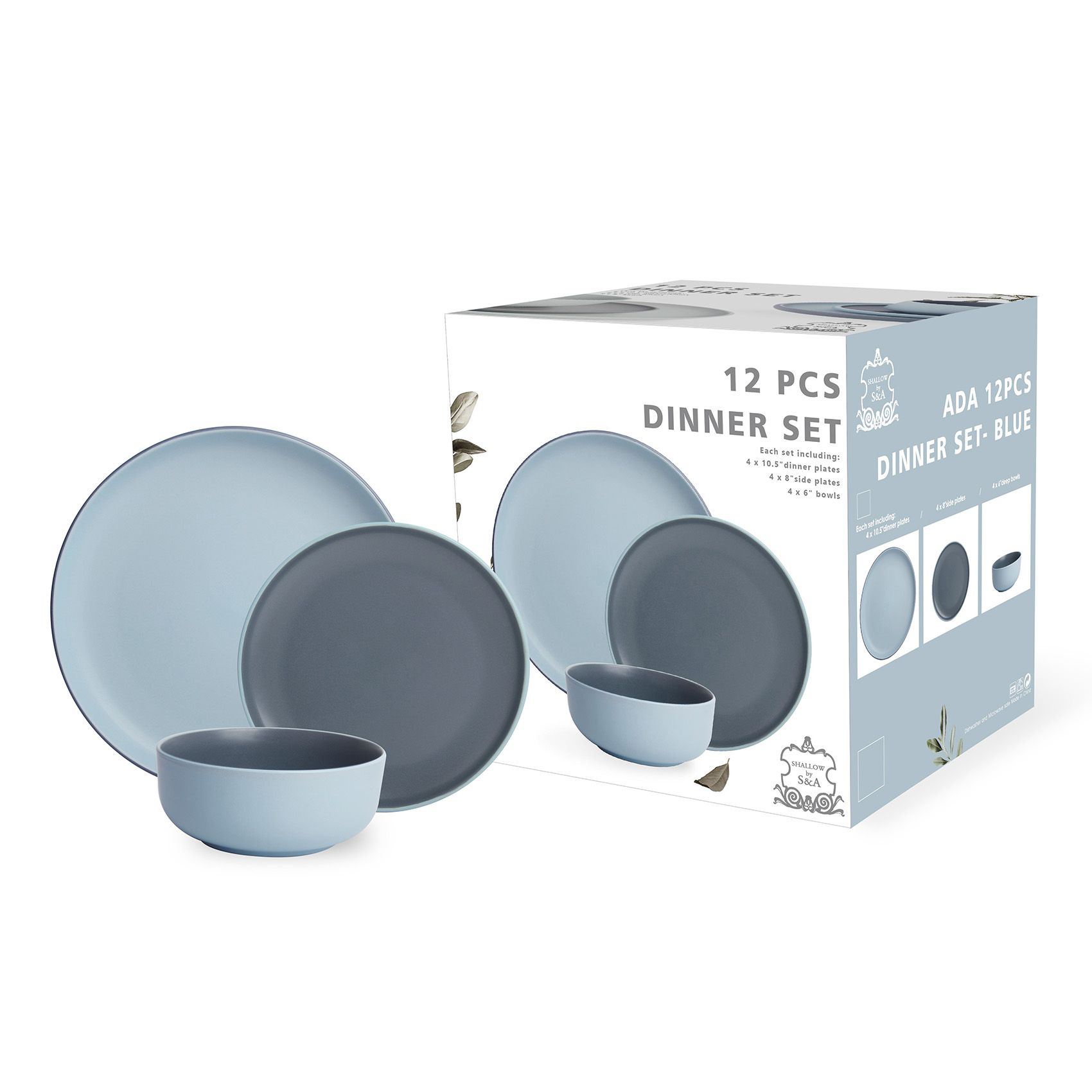 Shallow Nordic 12-Piece Dinner Set in Elegant Blue | 4 × 10.5” Dinner Plates, 4 × 7.5” Side Plates & 4 × 5.5” Deep Bowls