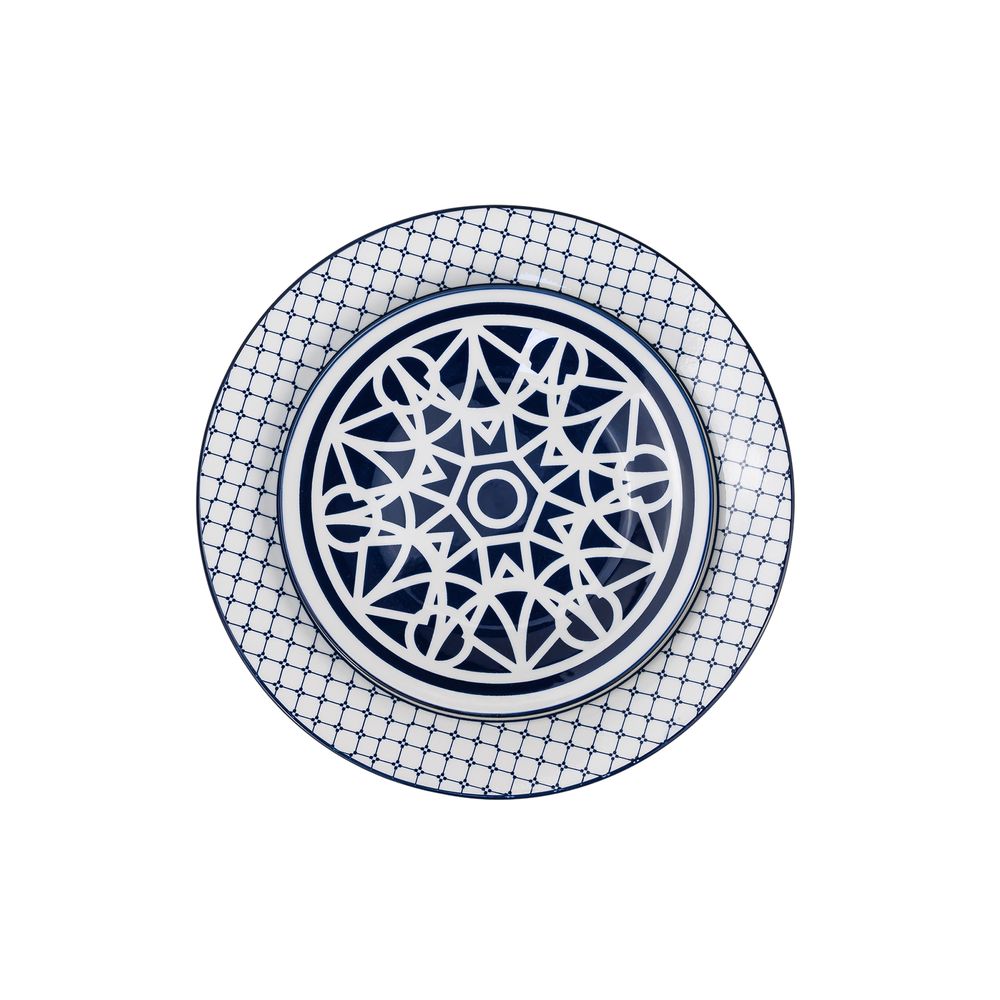 Shallow Porcelain MALFI 12-Pc Dinner Set - Elegant Blue Modern Crockery|4×10.5” Dinner Plates,4×7.5” Side Plates & 4×4.5”Small Bowls