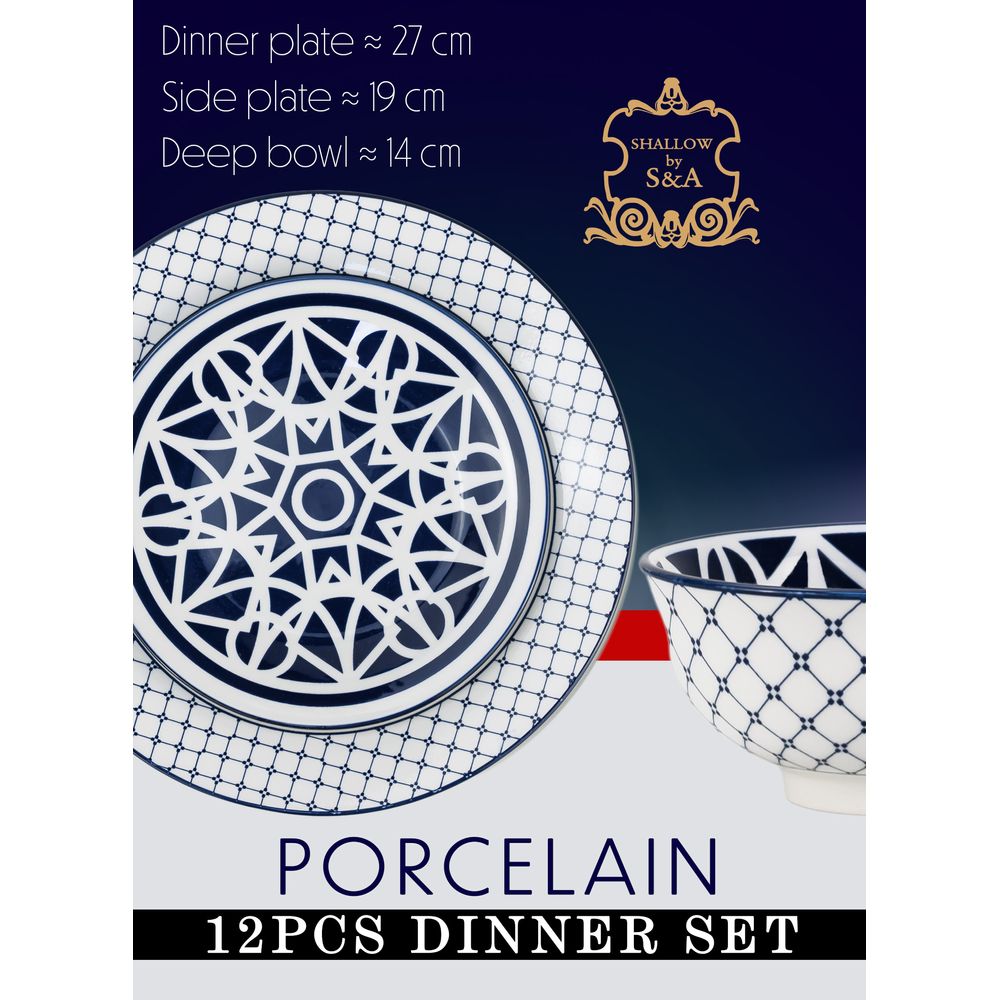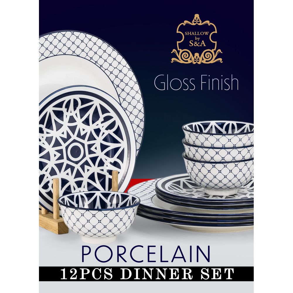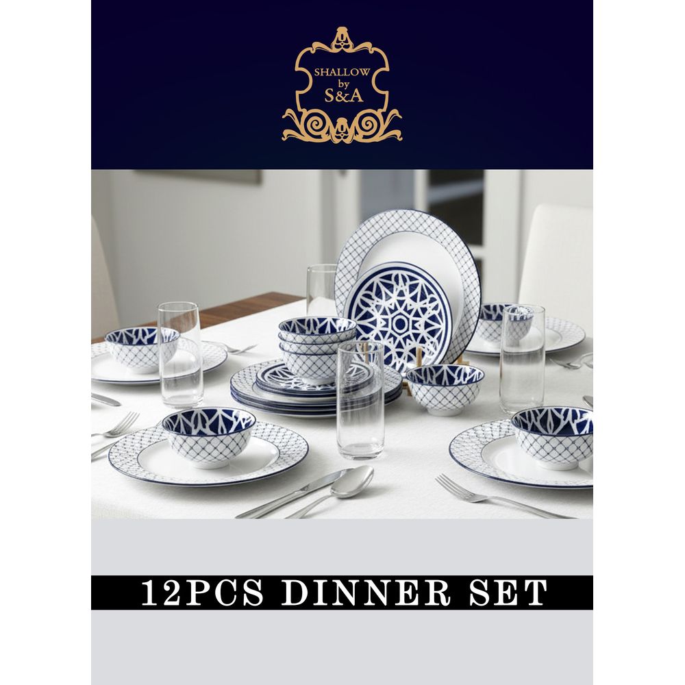 Upgrade your dining experience with the Shallow Porcelain MALFI 12-Piece Dinner Set in Elegant Blue, a perfect fusion of modern elegance, durability, and practicality