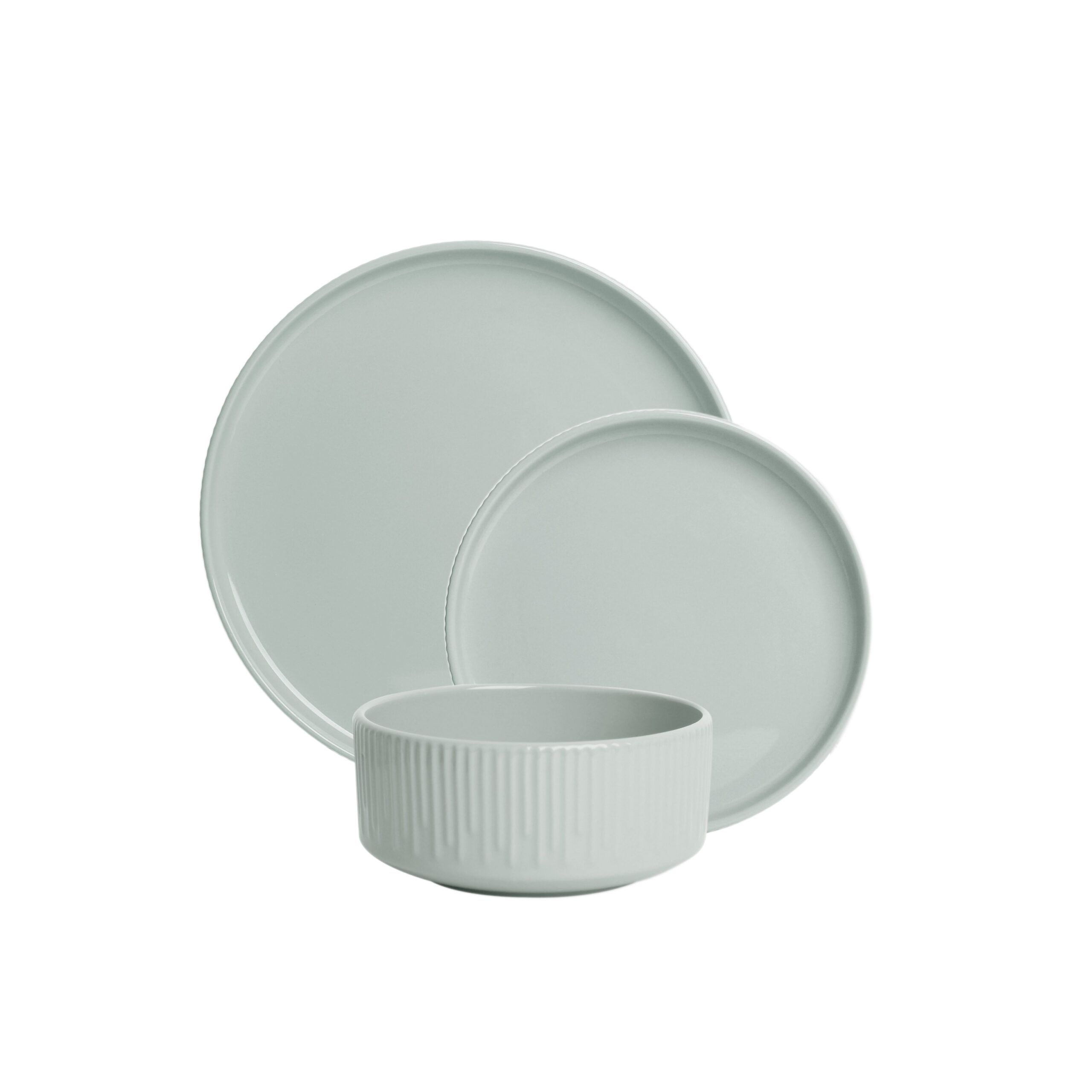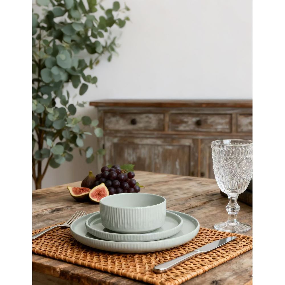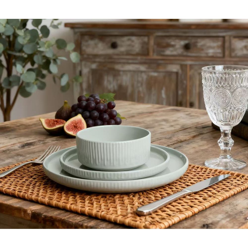 Transform your dining table with the Shallow Stoneware HARPER 12-Piece Dinner Set in Elegant Green, a perfect blend of Nordic minimalism, durability, and sophistication