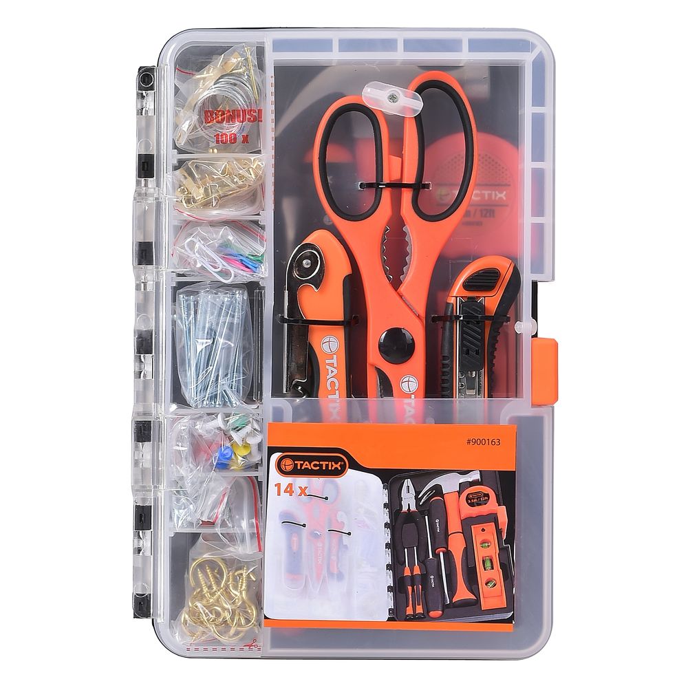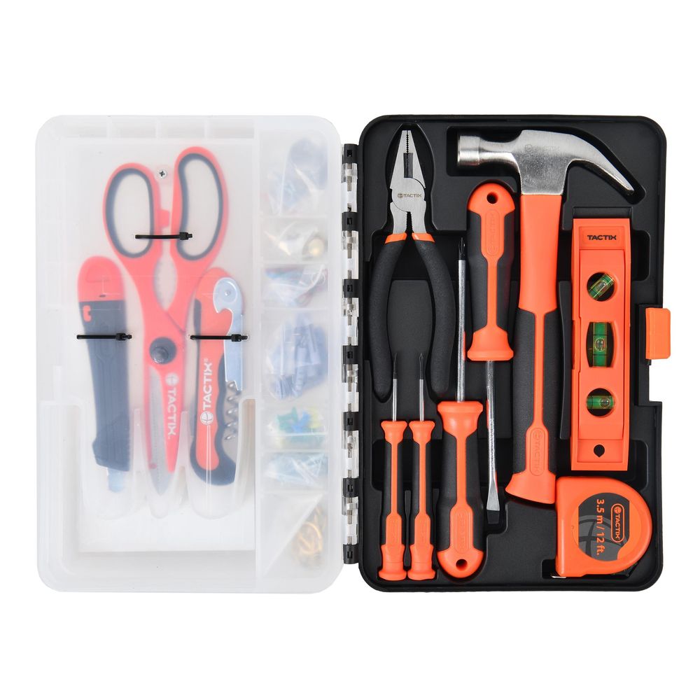 Tactix 14-Piece Drawer Tool Set, Multi-Opener, Snap-Off Knife, Scissors, Pliers, Screwdrivers, Claw Hammer, Tape Measure & More, Essential Hand Tool Kit for Home Repair & Maintenance- 900163