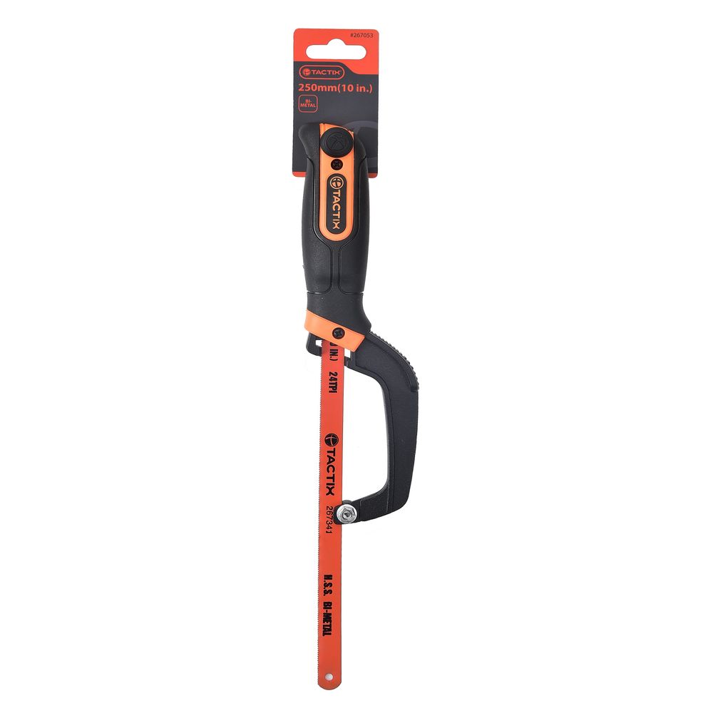 Tactix 250mm (10-Inch) Mini Hacksaw, Compact Hand Hack Saw Metal Frame with Bimetal Blade, Especially Cuts in Tight Spaces, Cutting Tool for Metal Wood PVC- 267053