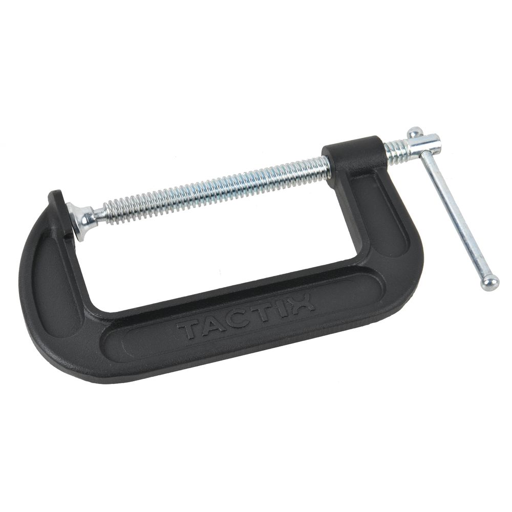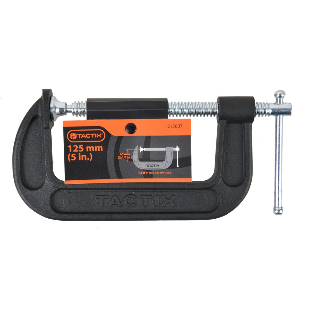 Tactix C-Clamp 5 Inch (125mm), Heavy-Duty Cast-Iron Body, Industrial Strength, Ideal for Woodworking, Gluing, Welding, Automotive and Repairs, Black- 215007