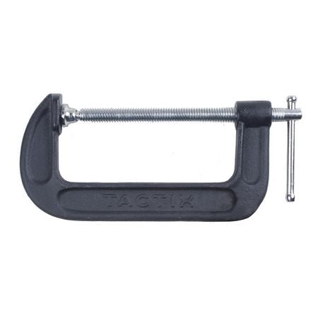 Tactix C-Clamp 6 Inch (150mm), Heavy-Duty Cast-Iron Body, Industrial Strength, Ideal for Woodworking, Gluing, Welding, Automotive and Repairs, Black- 215009