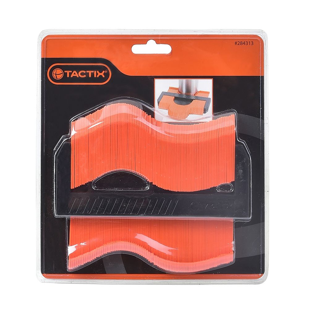 Built for durability and accuracy, the Tactix contour gauge is made from high-strength, non-toxic, plastic that withstands everyday job site use. Simply press the gauge against any irregular surface to capture its exact contour, then trace it onto your work piece for precise cutting and fitting.