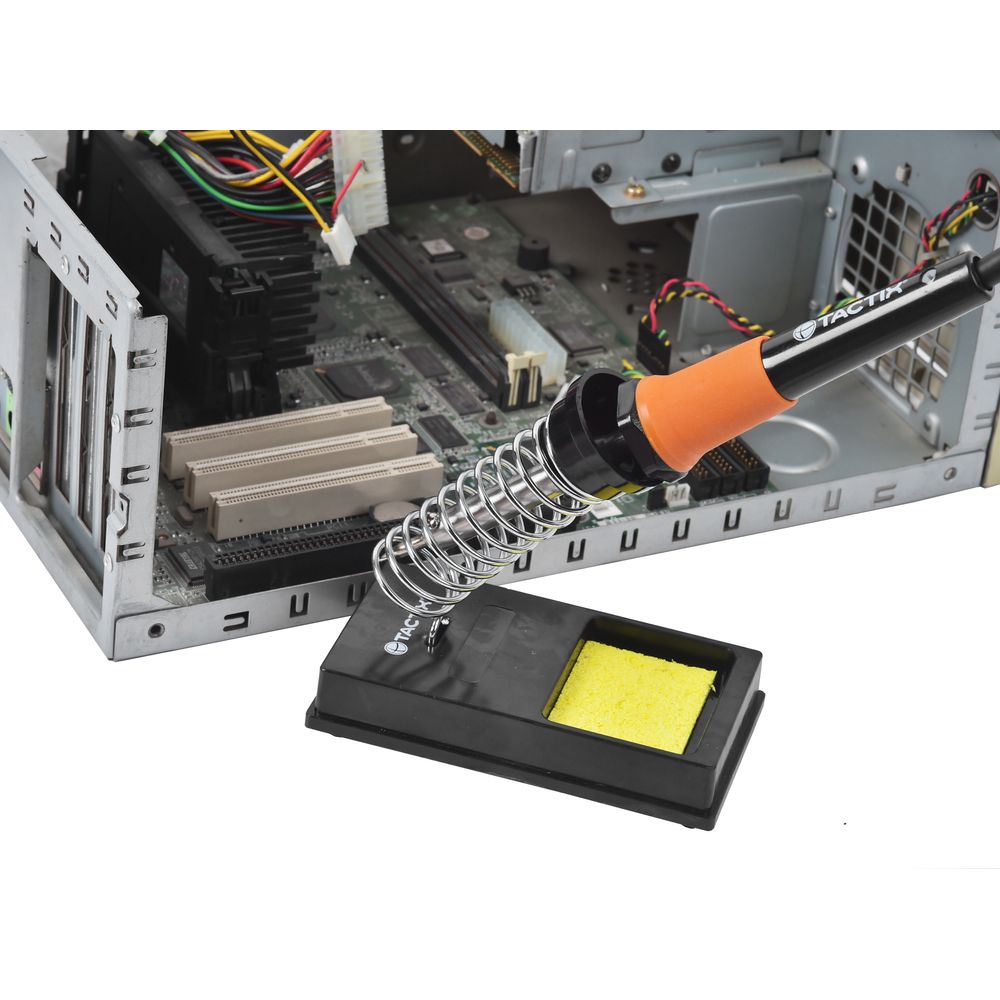 Tactix Solder Iron Stand with Coil Holder and Cleaning Sponge Tray, Durable Heat-Resistant Base for Soldering Irons, Ideal for Electronics DIY and Repair Work- 406905