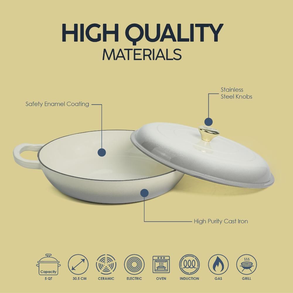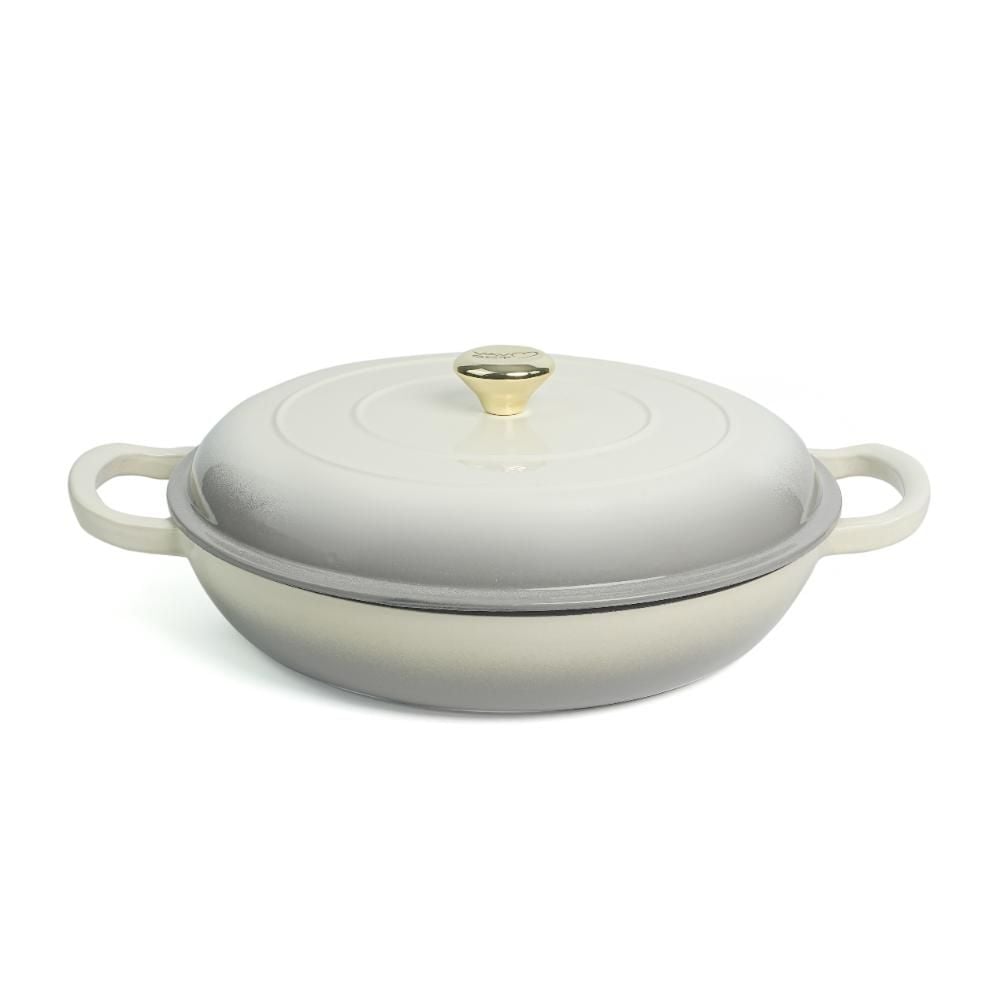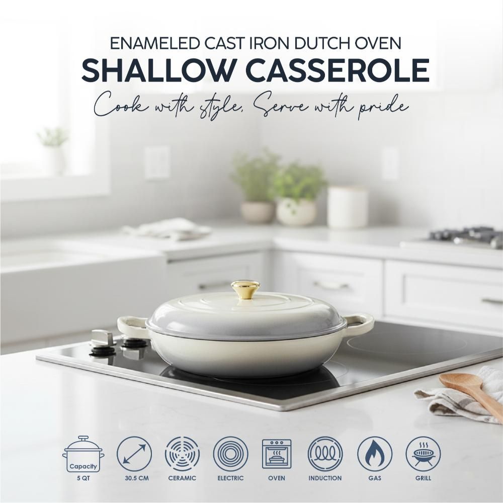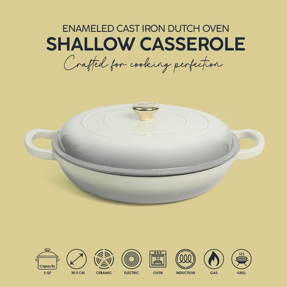 Enameled Cast Iron Dutch Oven Shallow Casserole 12-Inch - Cream