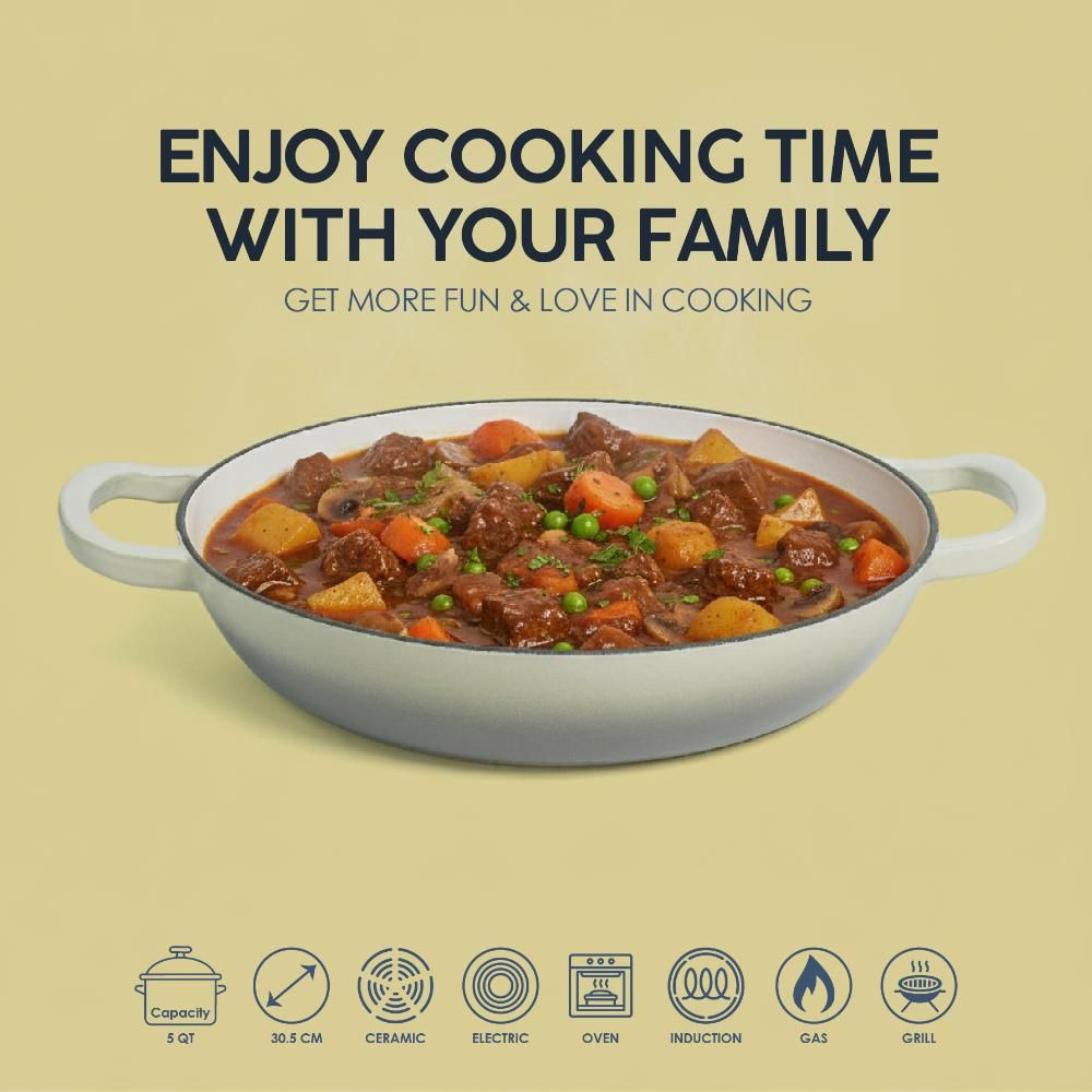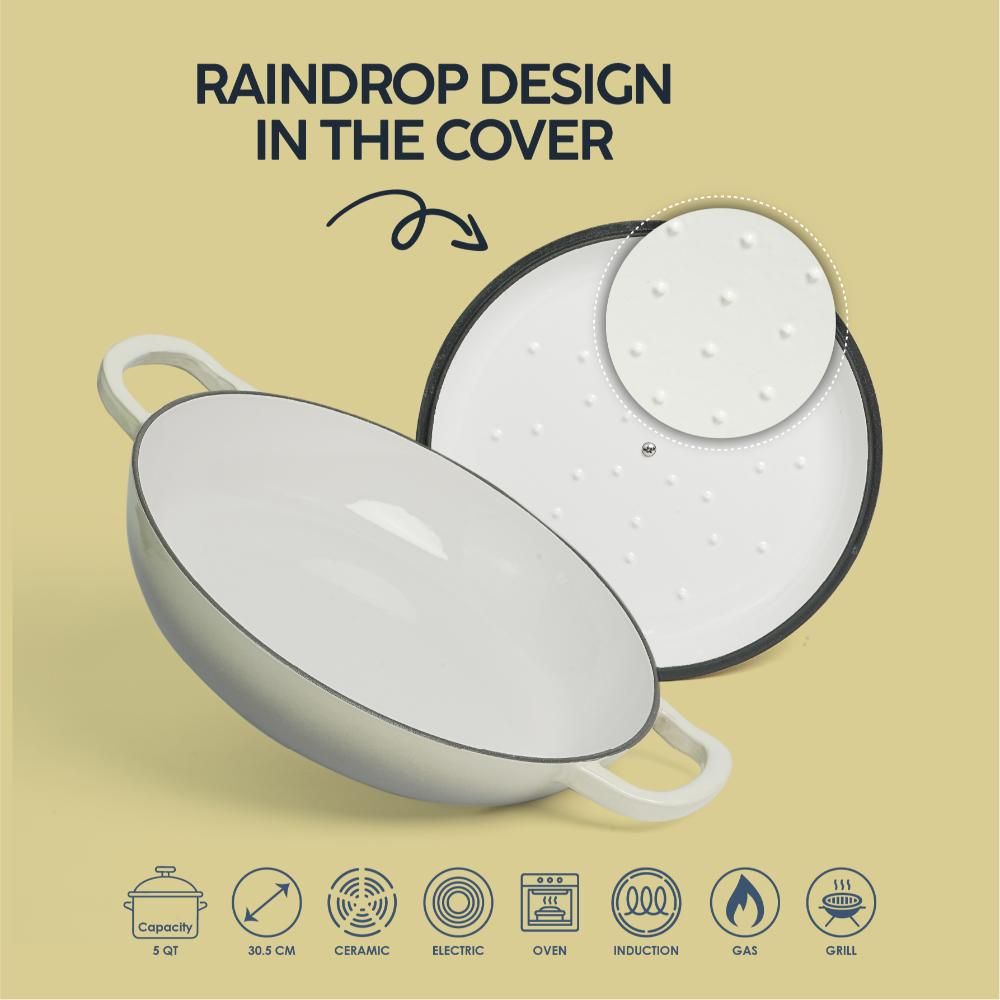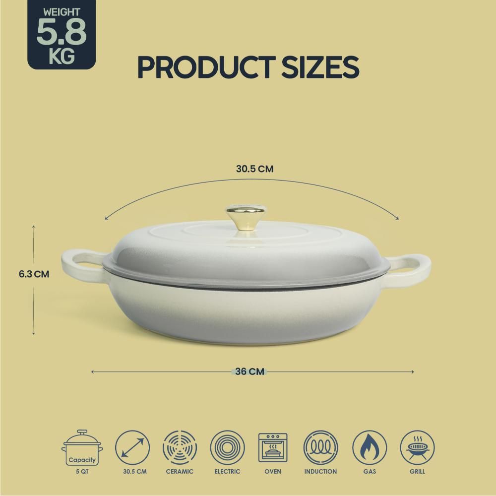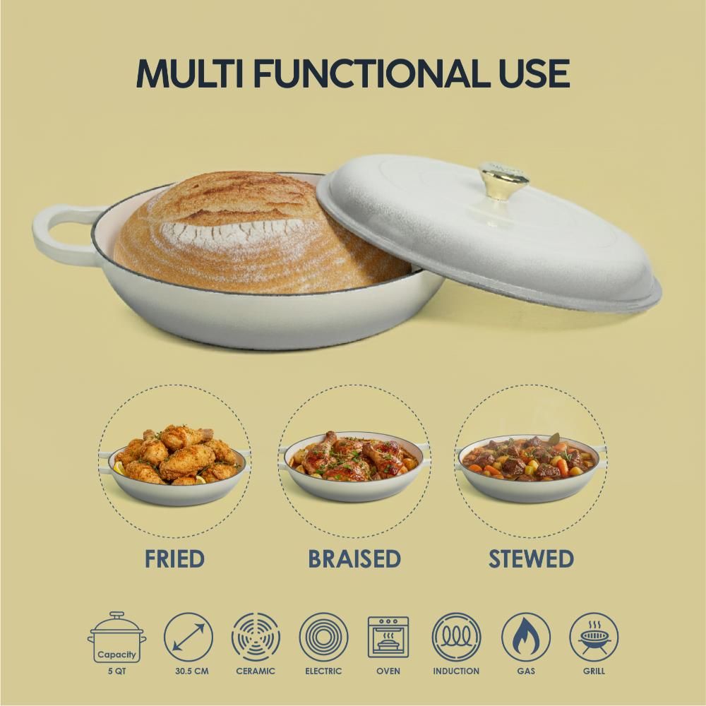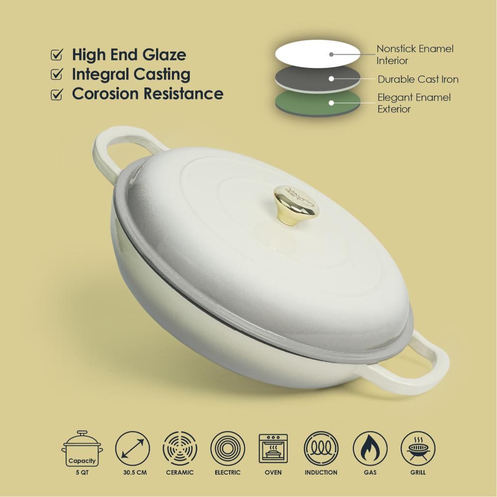 Enameled Cast Iron Dutch Oven Shallow Casserole 12-Inch - Cream