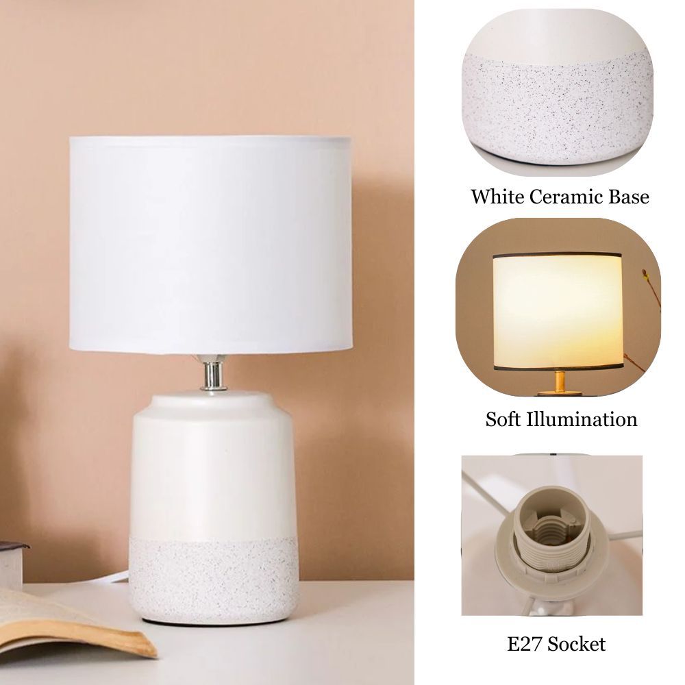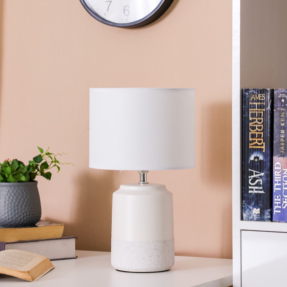 مصباح طاولة من السيراميك بتصميم هوغو - 20 × 20 × 36 سم - أبيض