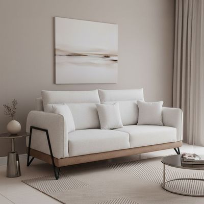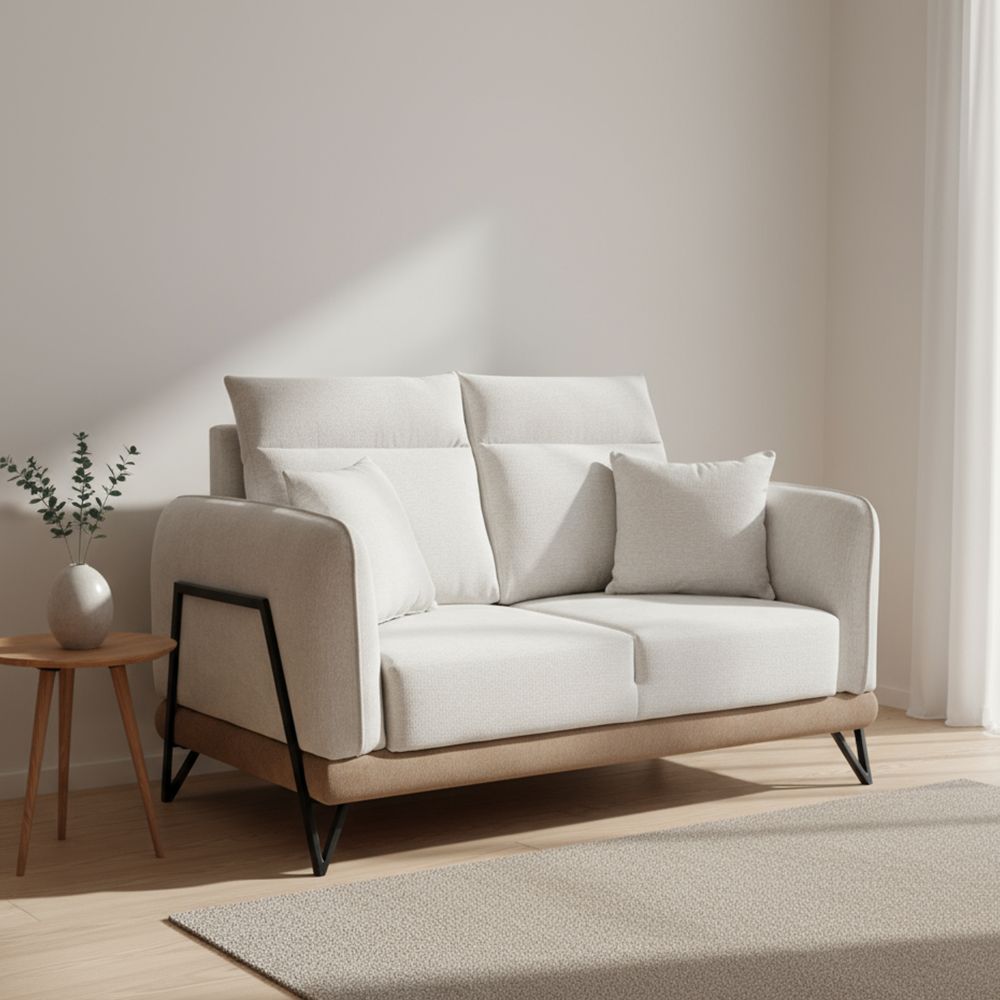 Mallorca 2 Seater Fabric Sofa - Light Grey/Brown