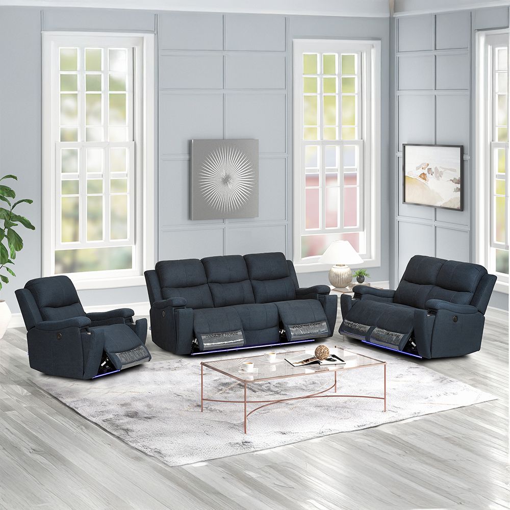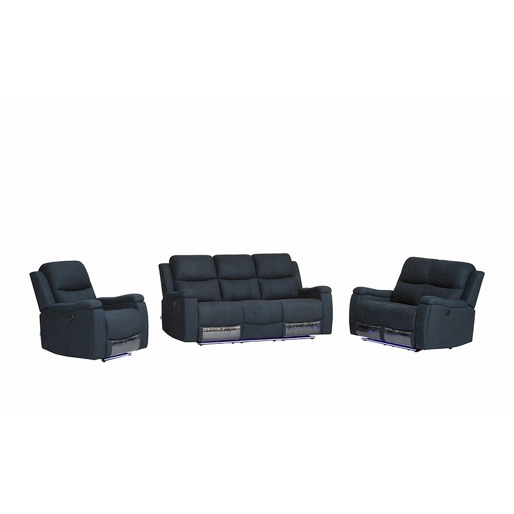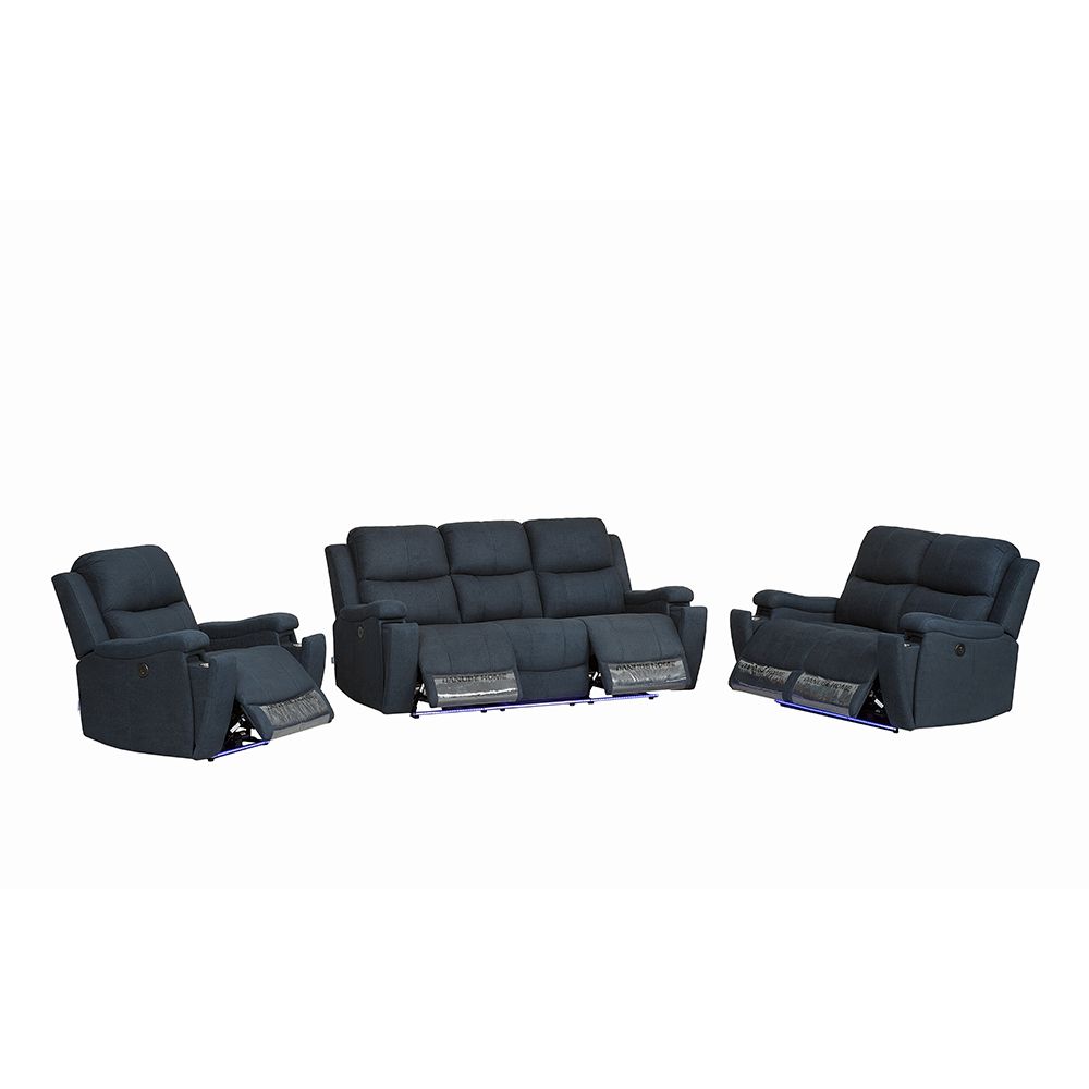 Paladin 3+2+1 Seater Fabric Recliner Set W/ Led & Cup Holder - Blue